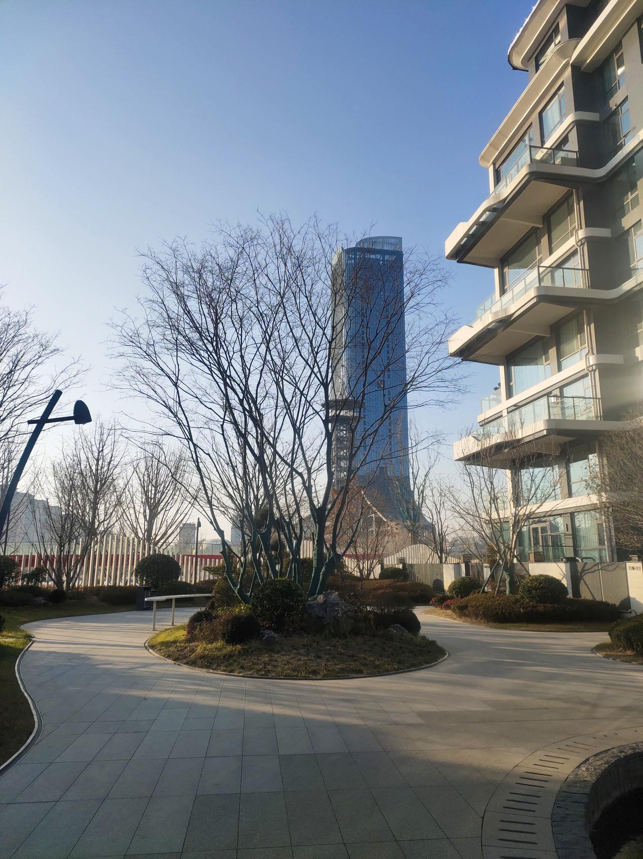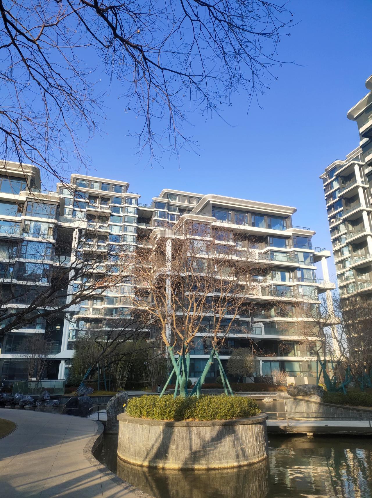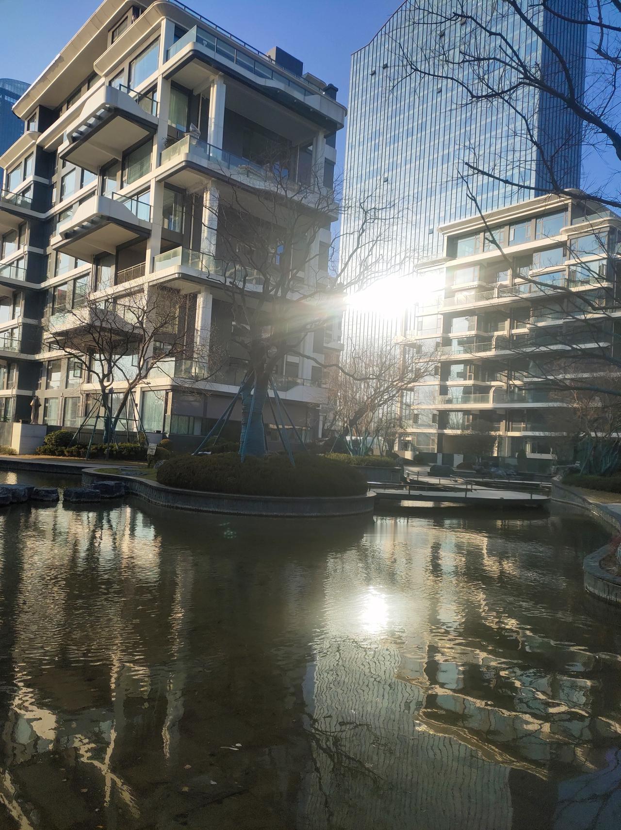 冬日午后,小区庭院,阳光明媚,树影婆娑,水波荡漾。🌲😀