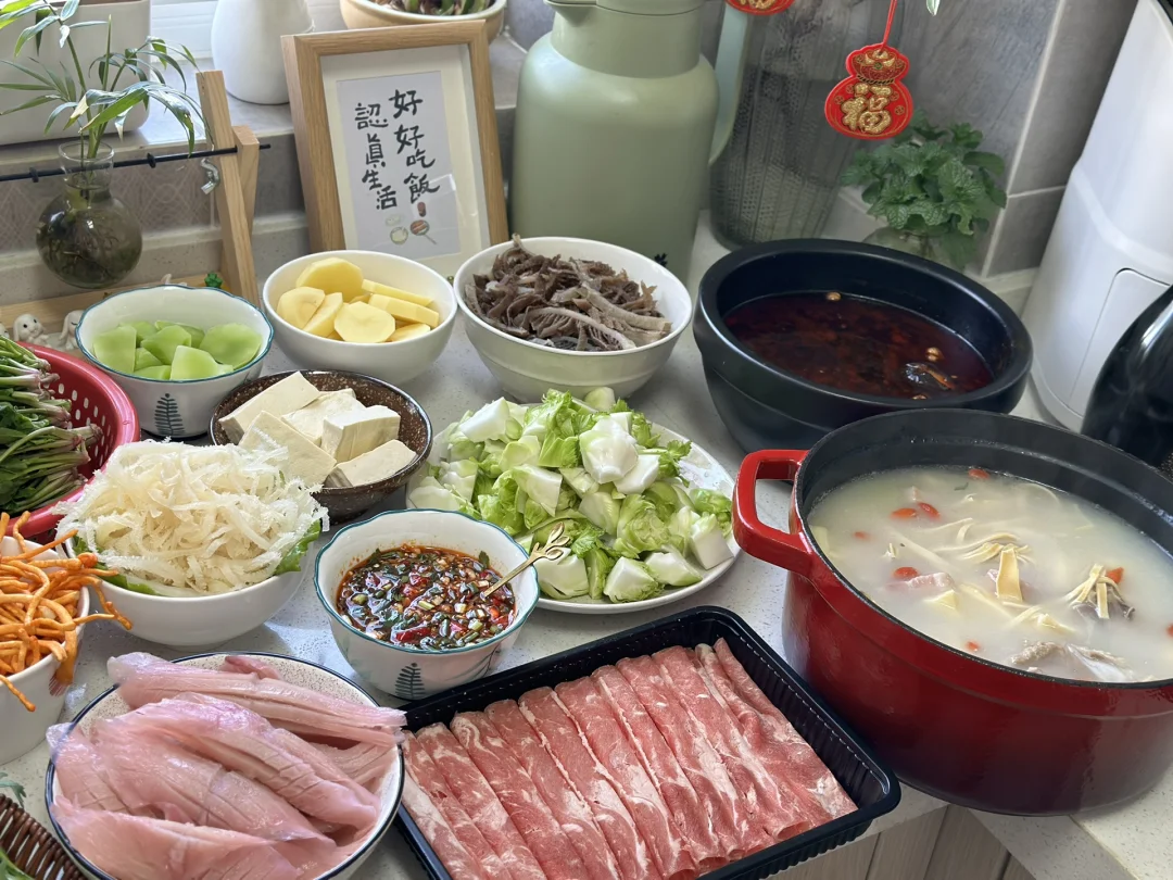 那天我们商量着说要么做一个腌笃鲜再做一个辣的火锅这样吃起来热闹还能喝点酒看看春晚也挺好的大家都很轻松也不会很累
