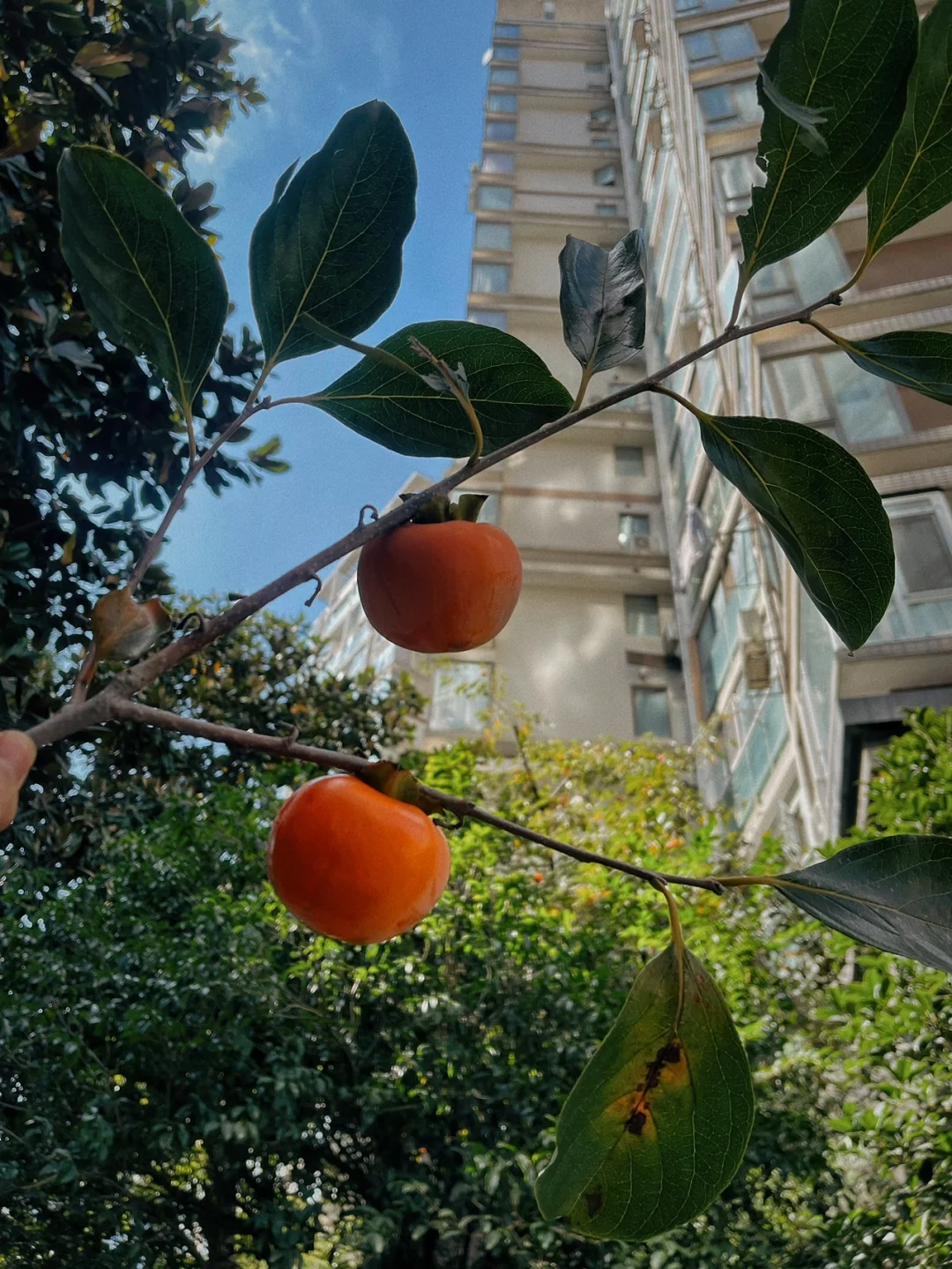 哈哈今儿个和闺蜜又干了件大事儿,小区楼下摘柿子[害羞R][害羞R]树挺高的我闺蜜厉害呀,颜色看着好喜欢,也很甜和苹果放几日会更好吃 话说回来我们小区一年四季都有水果吃,枇杷,桃子,李子,柿子,桂花!采摘的时候物业也很友好还问要不要帮忙搬梯子啥的,其实吃不了多少,采摘的乐趣[自拍R][赞R]摘的时候也有人在树下看热闹呢