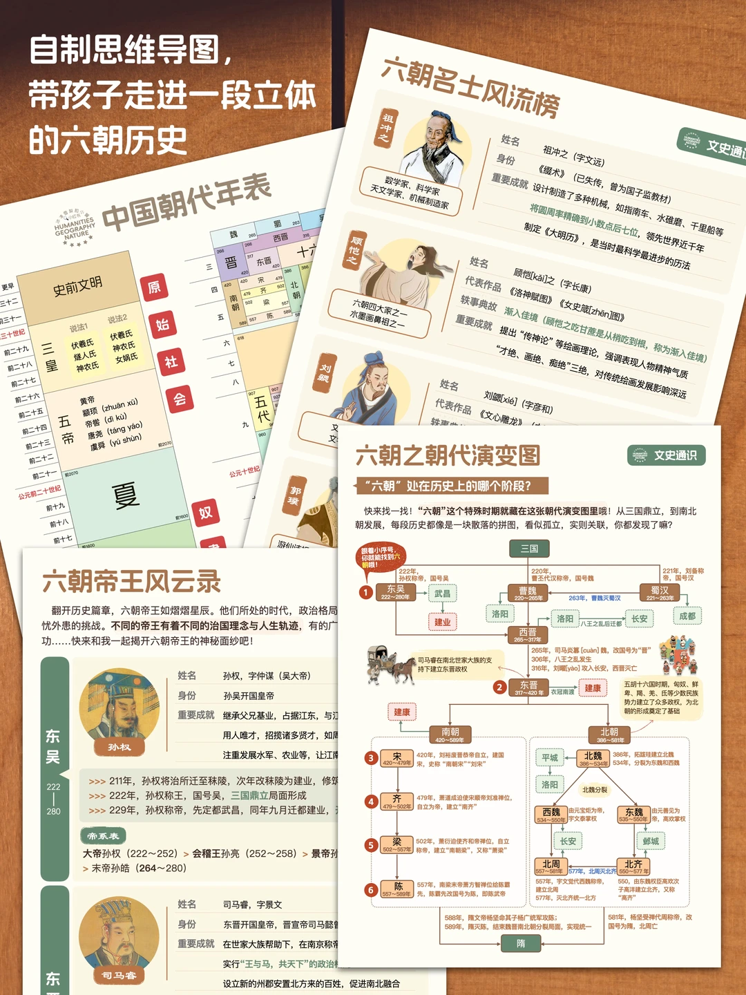 自制朝代更替图一目了然,从帝王讲到名士,让孩子一下就搞懂六朝历史——