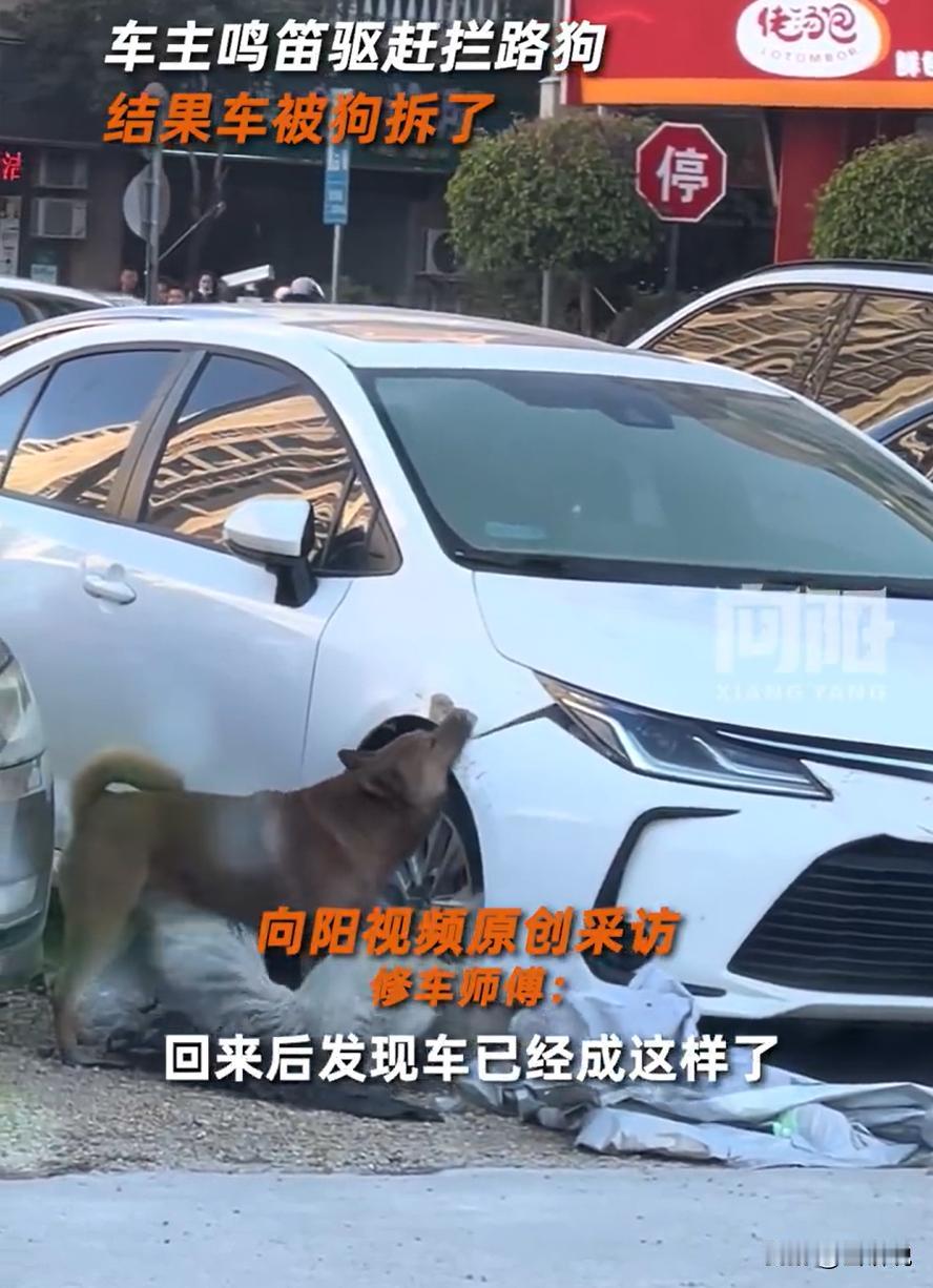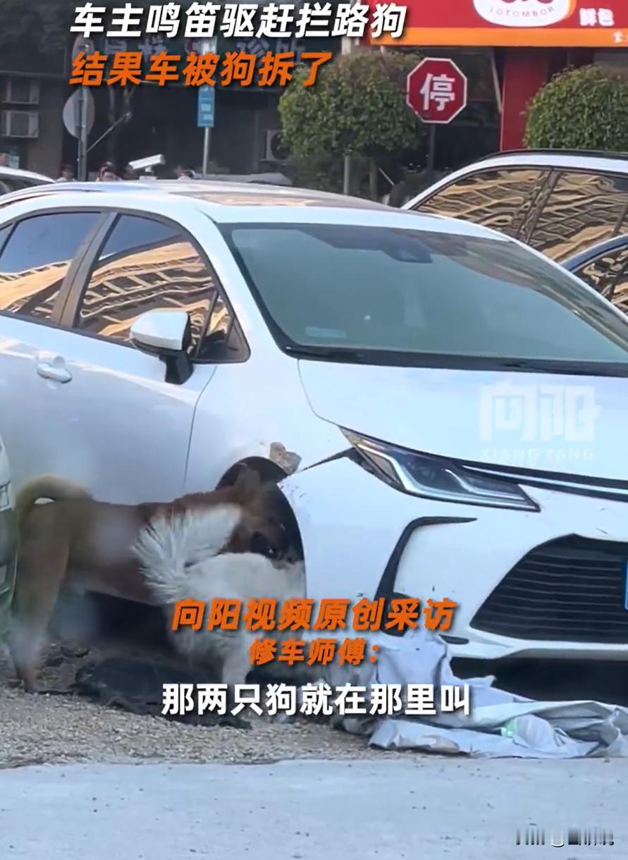 万万没想到!广东广州,一位车主开车时看到前面有两条狗,就鸣笛按了两下喇叭,可让他没想到的是,两只狗狗因此记仇了,趁他不在车上时,两只狗狗竟然直接把车给拆了,就连维修师傅都表示:干这么多年没见过这种的 从路人拍摄的视频来看,当时车主把车停进车位,锁好车门就离开了。没过多久,那两条狗竟然折返了回来,目标明确,直奔他的白色轿车。它们没碰旁边的任何一辆车,就围着这辆车转,接着用嘴又撕又咬 等车主回来的时候,车子已经变了样:叶子板被扯开,里面的线路和雨刮水管露了出来,内衬也被撕破了。好端端一辆车,就这么被“拆”了 修车师傅检查后直摇头,说干这行这么多年,第一次见到车子被狗咬成这样的。光是修好这些地方,就得花两千来块钱。车主自己也觉得无奈又离奇,不过是按了两下喇叭,怎么就结下了这么大的“仇” 其实说起来,很多时候动物的记仇不是情绪化,更像是本能反应。它们对声音、气味、动作的记忆非常直接,一旦把某个刺激和不舒服的体验连在一起,就会形成条件反射 平时我们总觉得,按喇叭、闪个灯,就是车和车、人和人之间最普通的提醒方式。但对动物来说,那种尖锐的声音可能就是挑衅,甚至是威胁 所以说,遇到路边的动物,能慢一点就慢一点,能绕就绕,喇叭能不用就不用。不是怕事,而是减少不必要的麻烦