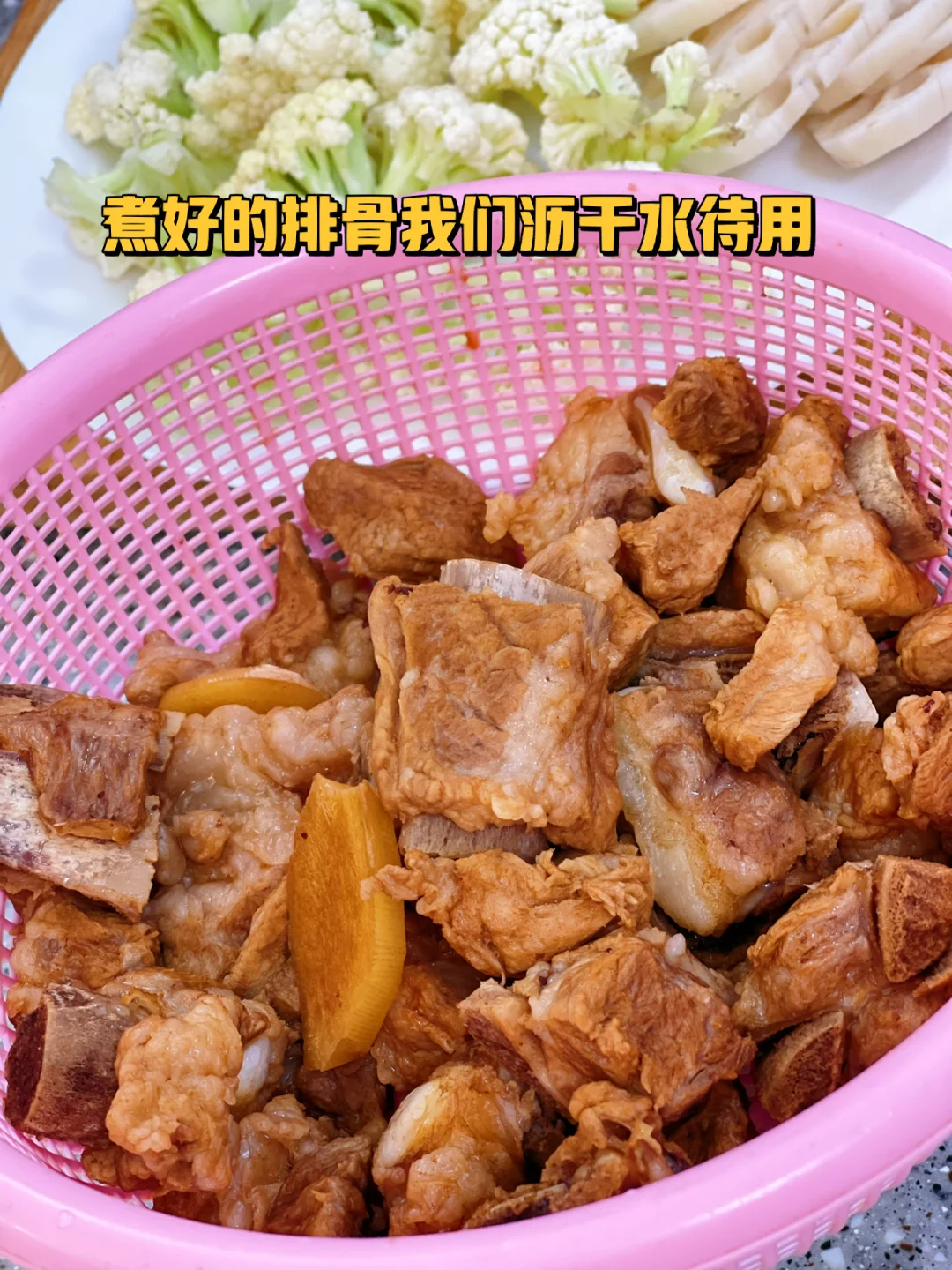 4. 煮好的排骨我们沥干水待用