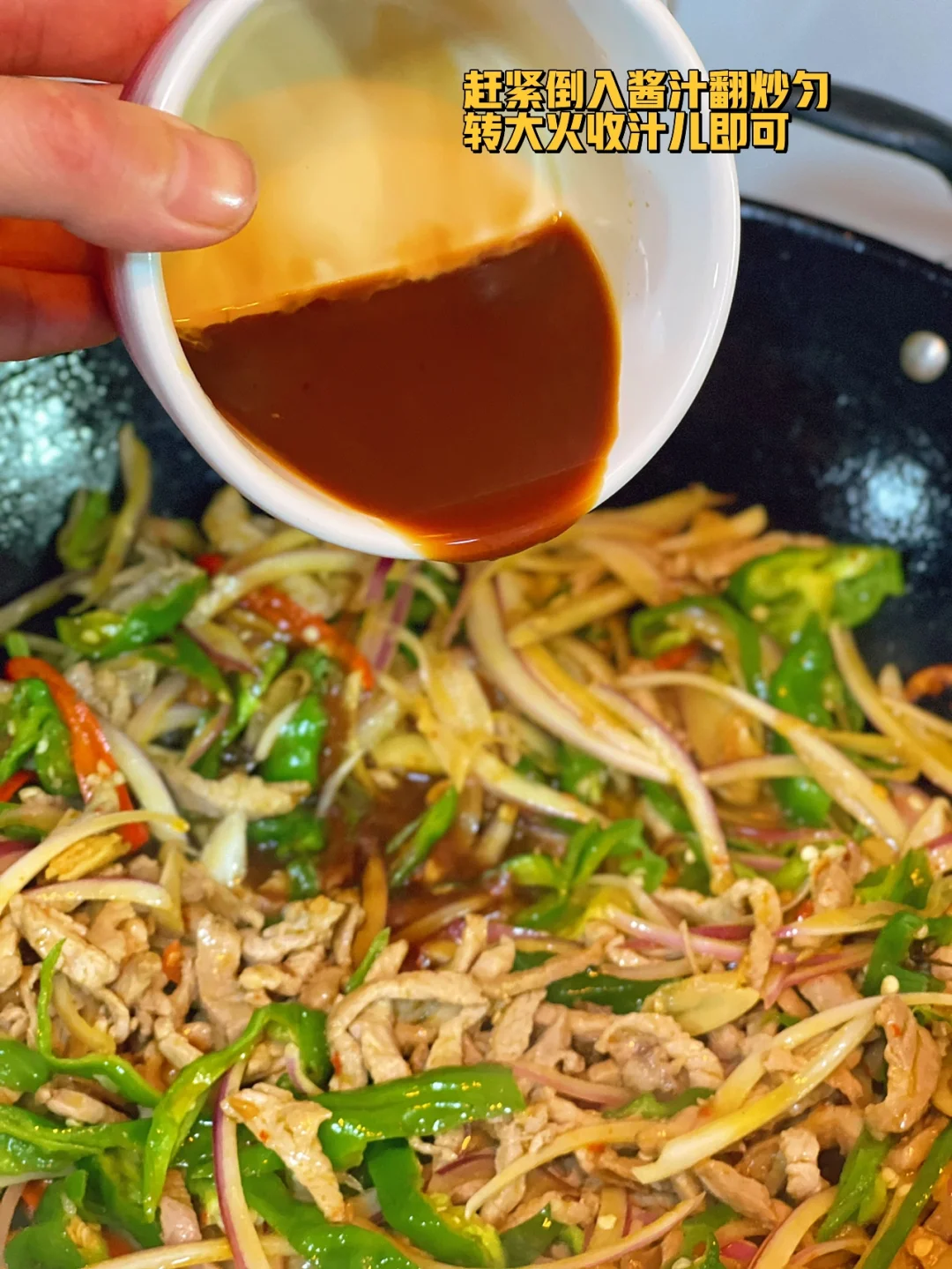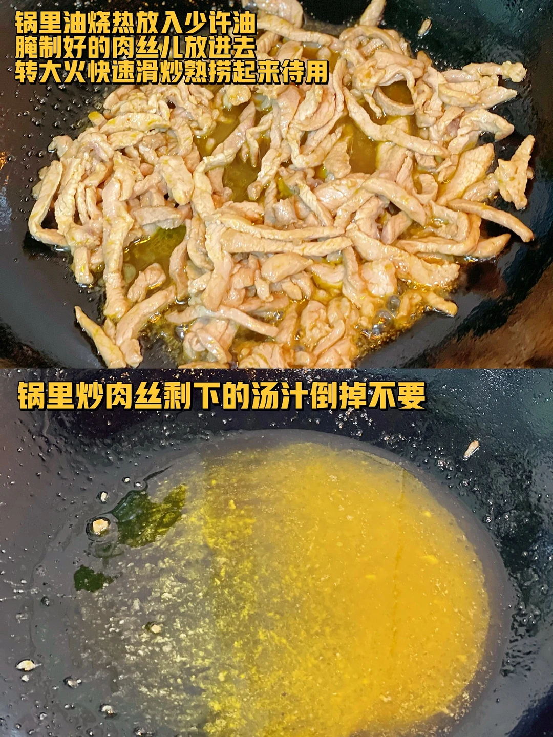 5. 锅里炒肉丝剩下的汤汁倒掉不要
