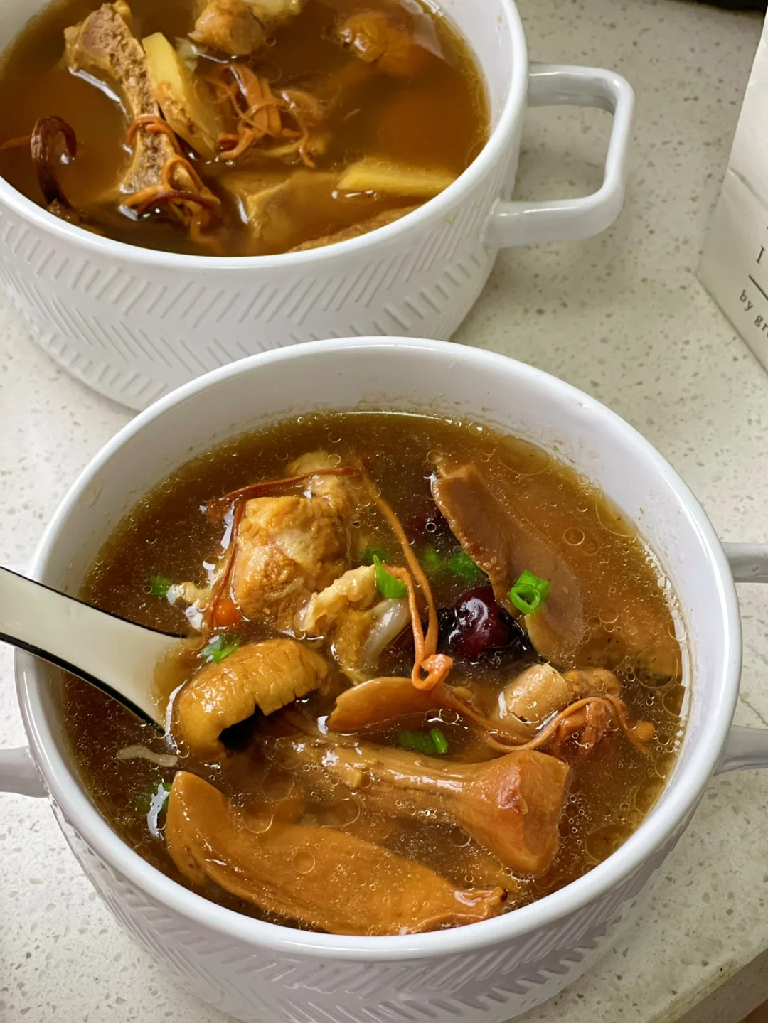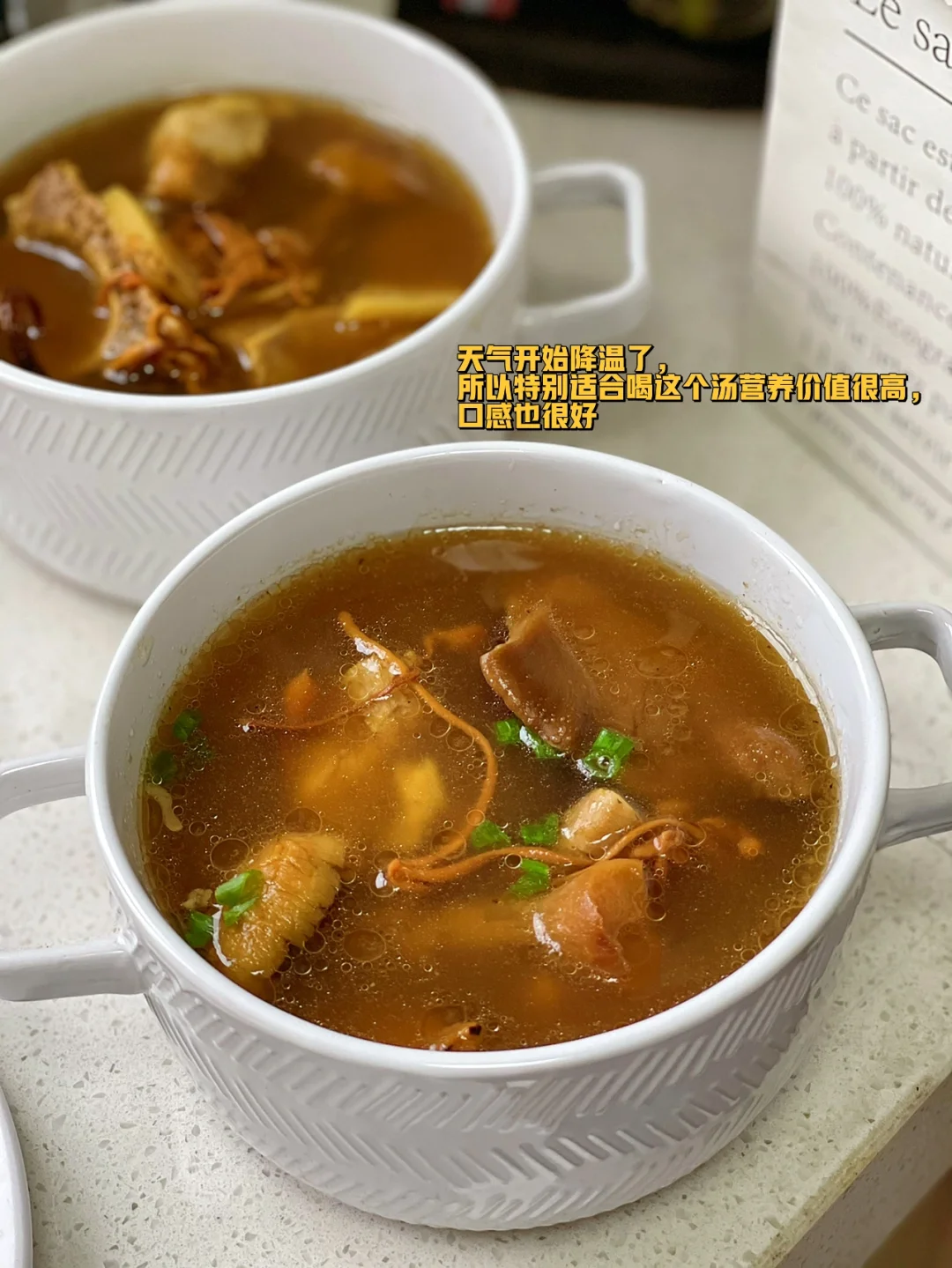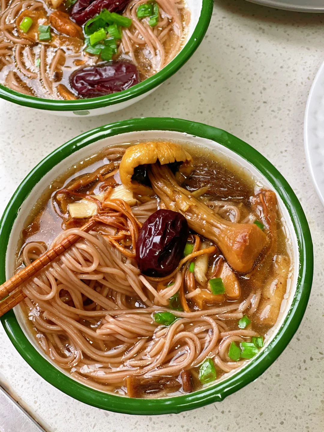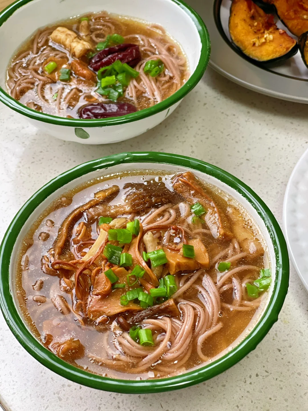 突然来的灵感觉得这个汤放一些面条进去应该很不错,家里刚好有荞麦面就煮了一些果然很赞