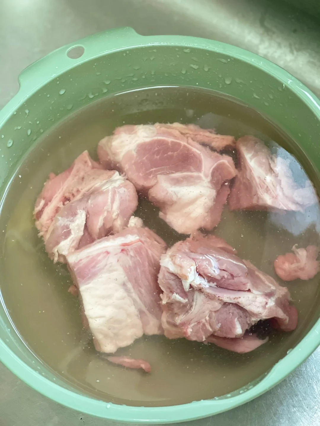 3.我今天用的是筒骨,回来泡了一个晚上,那个血有点吓人,所以你们煲汤之前多泡几个小时中间记的换换水