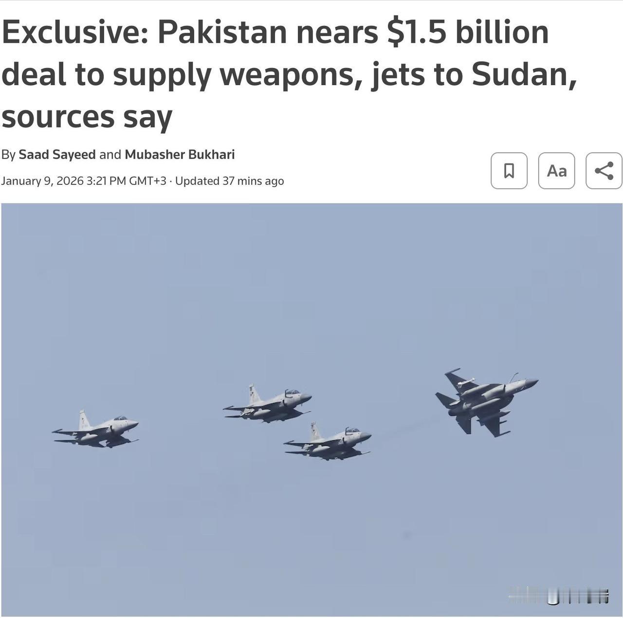 据《路透社》报道,巴基斯坦即将与苏丹达成一项价值 15 亿美元的军售协议,其中包括 Karakoram-8 攻击机、无人机、防空系统,以及可能的 JF-17 战斗机。此举可能会大大增强苏丹军队在与快速支援部队 (RSF) 的战争中的实力。