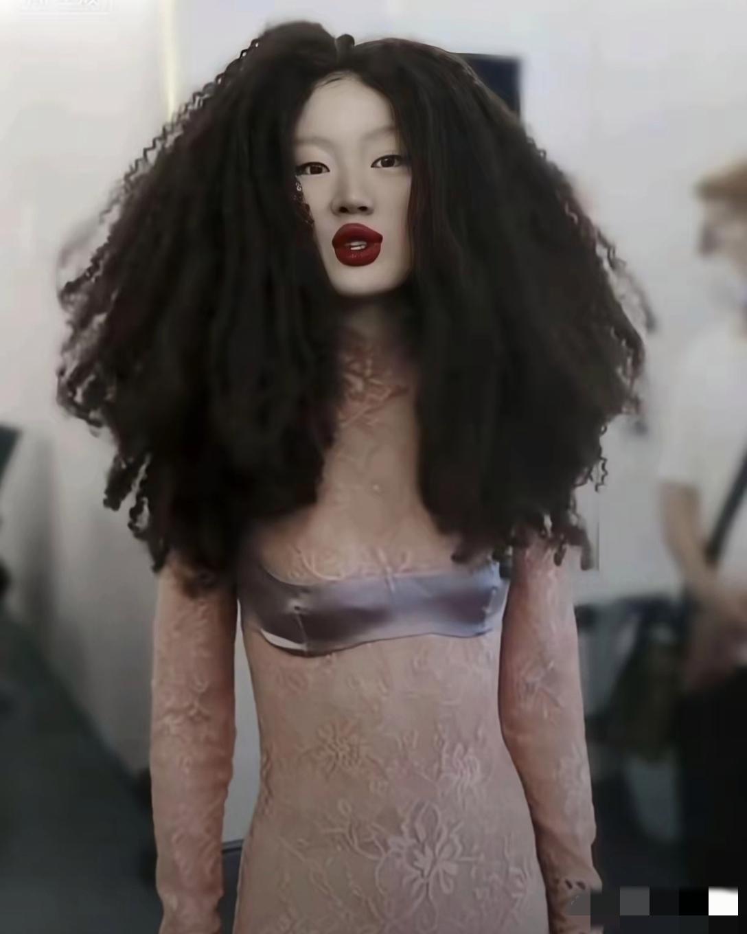哇塞,镜头中的单依纯泡面发型,淡眉凤眼,双腮染赤,O型红唇如若香肠,平板身材一览无余,看上去像个巫女哈,就不能清清纯纯地做个歌手吗?