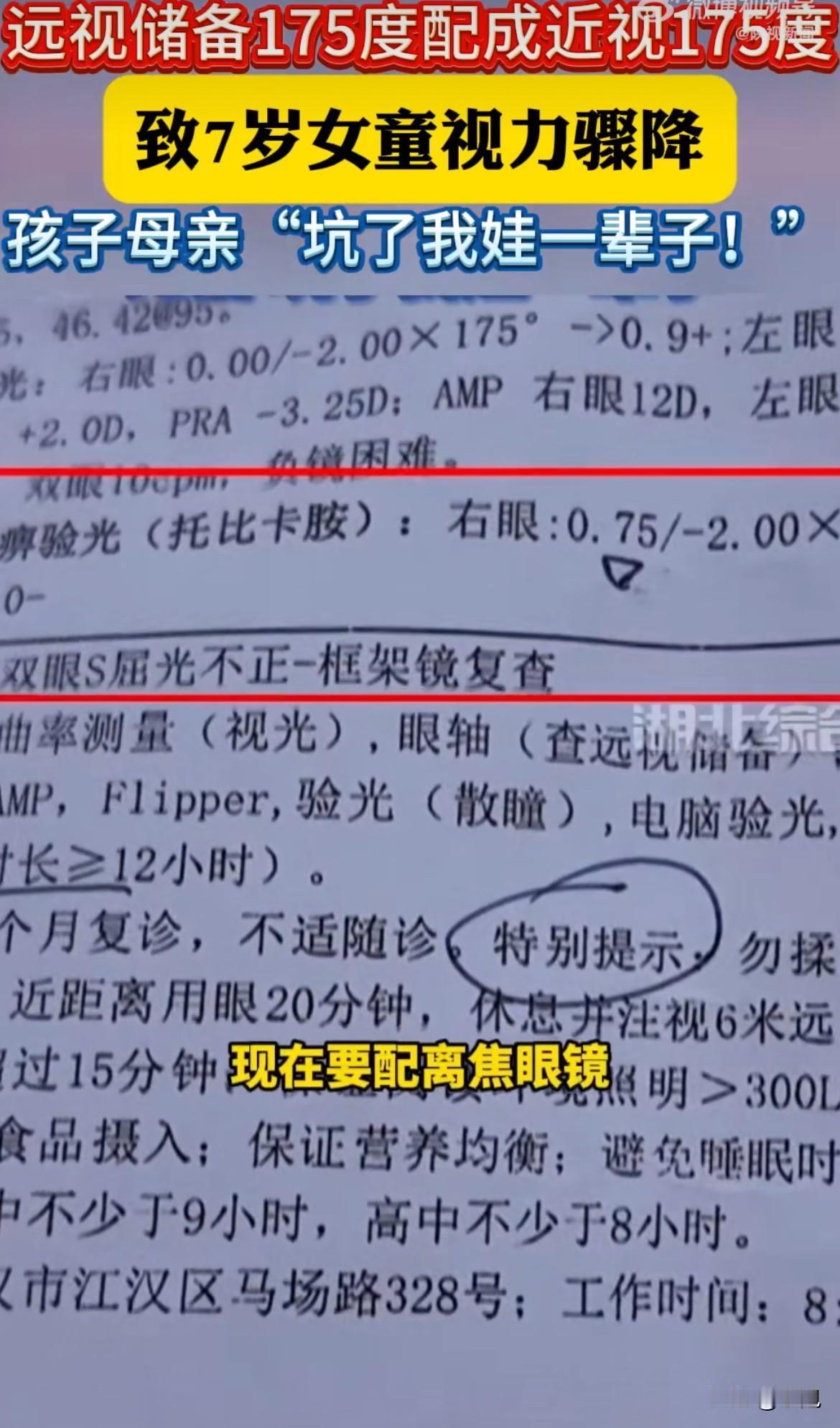 湖北武汉一位妈妈,今年2月带着7岁的女儿去配新眼镜。孩子只是散光度数有点增长,远视储备还有175度,这本来是好事。妈妈拿着医院准确的验光单,去了眼镜店。 新眼镜戴上了。可接下来的十个月,孩子总说眼睛累,看东西不舒服。妈妈以为是学业重,只是反复叮嘱孩子多休息。 直到年底,妈妈觉得不对劲,带孩子去检查,结果如晴天霹雳:镜片被装反了。孩子175度的远视储备加200度散光,被错配成175度近视加200度近视。 这意味着,孩子的眼睛为了看清世界,在过去十个月里,每天都在错误地、拼命地“拉长”眼轴,去适应那副根本不对的眼镜。 医生痛心地说,这个错误操作,导致孩子本可以支撑4年的“远视储备”——也就是对抗近视的宝贵本金——在短短1年内被消耗殆尽。现在,孩子不得不面临更早、更快的近视发展。 一副眼镜,一次粗心,偷走的是孩子眼睛天然的防护屏障。这件事提醒每一位家长:给孩子配镜后,如果孩子持续表达不适,一定要立刻、反复核查。这不是挑剔,这是保护他们看世界的权利。
