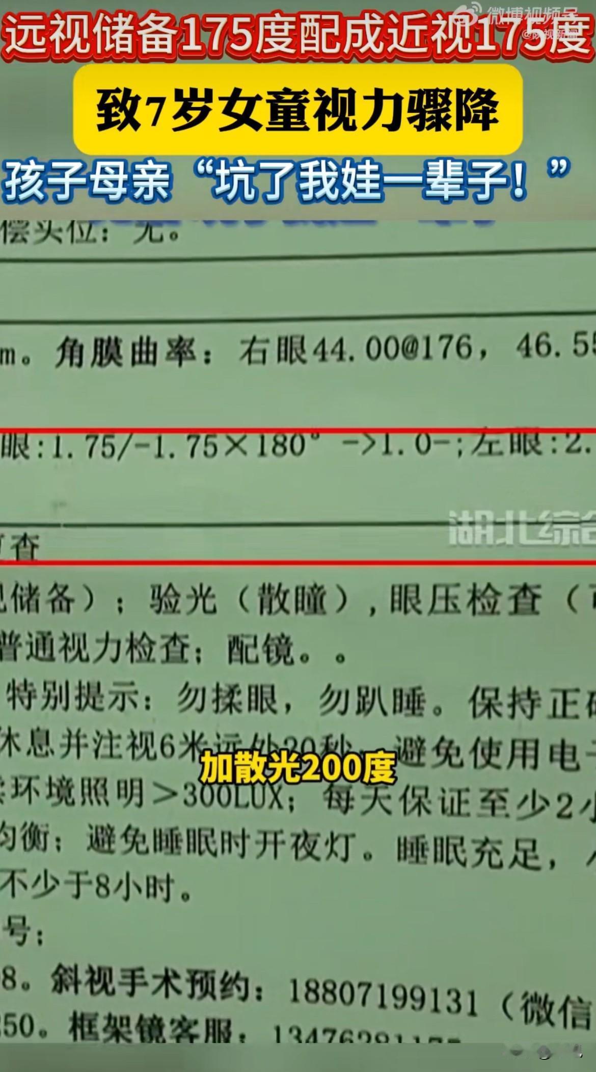 湖北武汉一位妈妈,今年2月带着7岁的女儿去配新眼镜。孩子只是散光度数有点增长,远