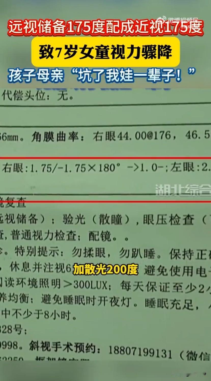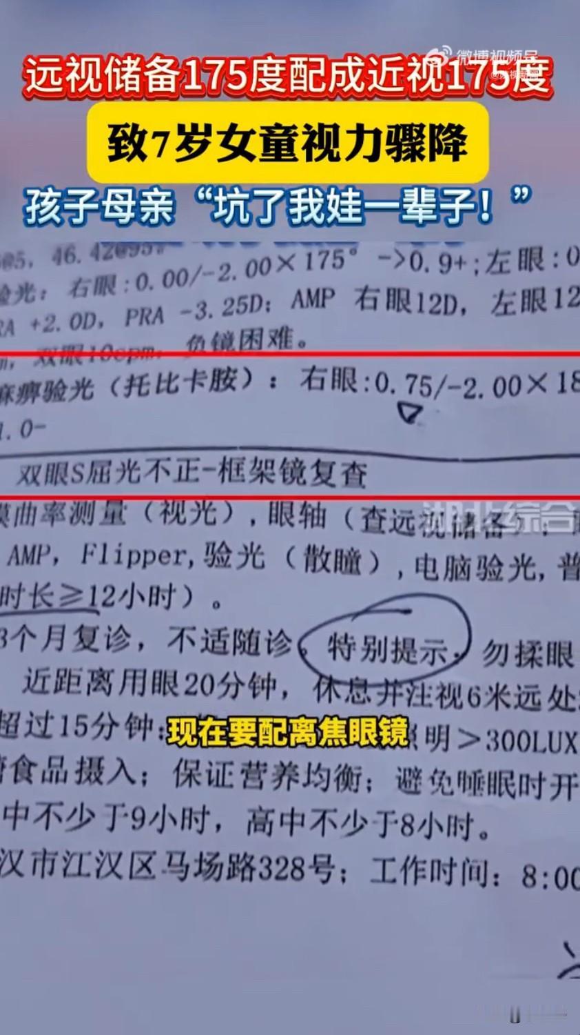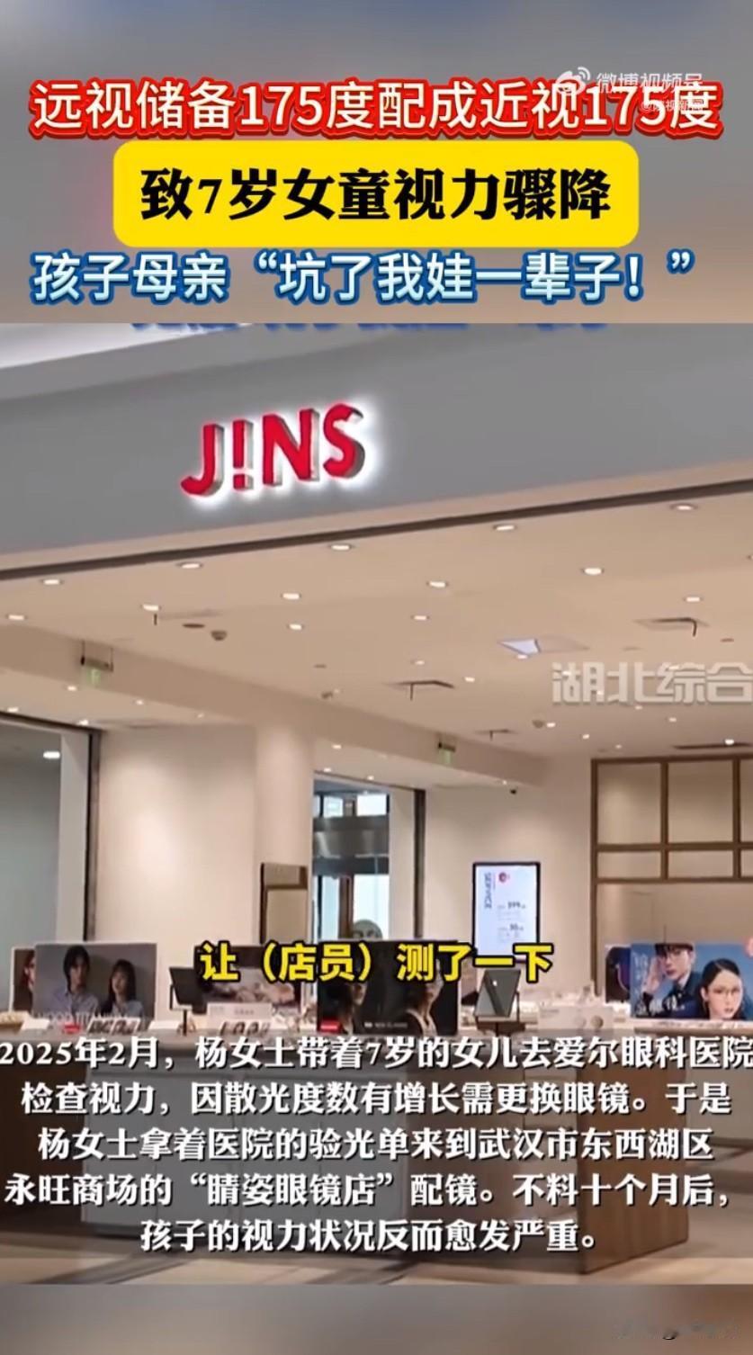 眼镜店配反镜片坑惨7岁女童!10个月耗光4年远视储备,家长崩溃! 湖北武汉一起儿童配镜失误事件,让无数家长揪心又愤怒!7岁女童镜片配反10个月后才发现 眼镜店镜片配反7岁女童视力骤降 话题刷屏后,网友们纷纷怒斥“这是在毁孩子一辈子”,眼镜店的粗心操作,给孩子的视力造成了难以挽回的伤害。 事情的经过让人心疼又气愤,杨女士7岁的女儿一直有散光问题,每年都会定期监测视力,之前只有散光没有近视,还保有175度的远视储备——这可是孩子视力发育的“保护盾”,正常情况下能慢慢消耗4年,有效延缓近视发生。因为散光度数有所增长,杨女士特意带孩子去正规眼科医院做了检查,拿着精准的验光单去眼镜店配新眼镜,本以为这样万无一失,没想到却踩了大坑。 配镜后的十个月里,孩子的视力状况越来越差,看东西总爱眯眼、歪头,还频繁喊眼睛累。杨女士心里犯嘀咕,带着孩子去配镜的门店复查,店员一测竟说孩子有了近视,这让她完全不敢相信。为了弄清真相,她赶紧带孩子去医院做详细检查,医生的话让她瞬间崩溃:孩子的眼镜镜片完全配反了!本该配远视储备175度加散光200度的矫正镜片,被错配成了近视175度加近视200度,相当于给孩子的眼睛装了“反向枷锁”。 医生解释,儿童视觉系统还没发育成熟,错误的镜片会强制眼睛适应异常屈光状态,导致眼轴快速增长,这也是孩子视力骤降的根源。原本能支撑4年的远视储备,短短10个月就被完全消耗,而远视储备一旦耗光,孩子近视的风险会大幅增加,后续进展也可能更快。现在只能给孩子配离焦眼镜,通过让周边图像成像在视网膜前的原理,给眼球传递“停止生长”的信号,才能尽量控制、延缓近视加深。 杨女士又气又悔,直言“坑了我娃一辈子”,她拿着医院的诊断结果找眼镜店讨说法,可对方的态度却十分敷衍,只愿意退换眼镜,不愿承担后续的治疗和矫正费用。根据《产品质量法》,眼镜店售出的镜片不符合验光单标注的标准,属于不合格产品,理应承担赔偿损失的责任。这起事件也不是个例,不少家长都分享过类似经历,要么是度数配错,要么是散光轴位偏差,都给孩子的视力带来了不良影响。 这事儿传开后,网友们彻底炸了锅,“配镜这么严肃的事也能这么粗心?”“把远视配成近视,这不是毁孩子视力吗”“眼镜店的专业度太让人堪忧了”。大家的愤怒,既为孩子的遭遇心疼,也源于对配镜行业乱象的担忧——儿童配镜涉及专业验光、精准加工等多个环节,任何一步失误都可能对孩子视力造成不可逆的伤害。 这起悲剧也给所有家长敲响了警钟:给孩子配镜一定要选择正规、专业的机构,拿到眼镜后最好再去医院复核度数;佩戴期间如果孩子出现揉眼、喊头晕、看东西模糊等情况,一定要及时检查。而眼镜店更该守住专业底线,验光配镜的每个环节都要严谨细致,毕竟每一副眼镜都关乎使用者的视力健康,尤其是孩子的眼睛,容不得半点马虎。配镜镜片 儿童配镜 配镜乱象 来源:湖北综合