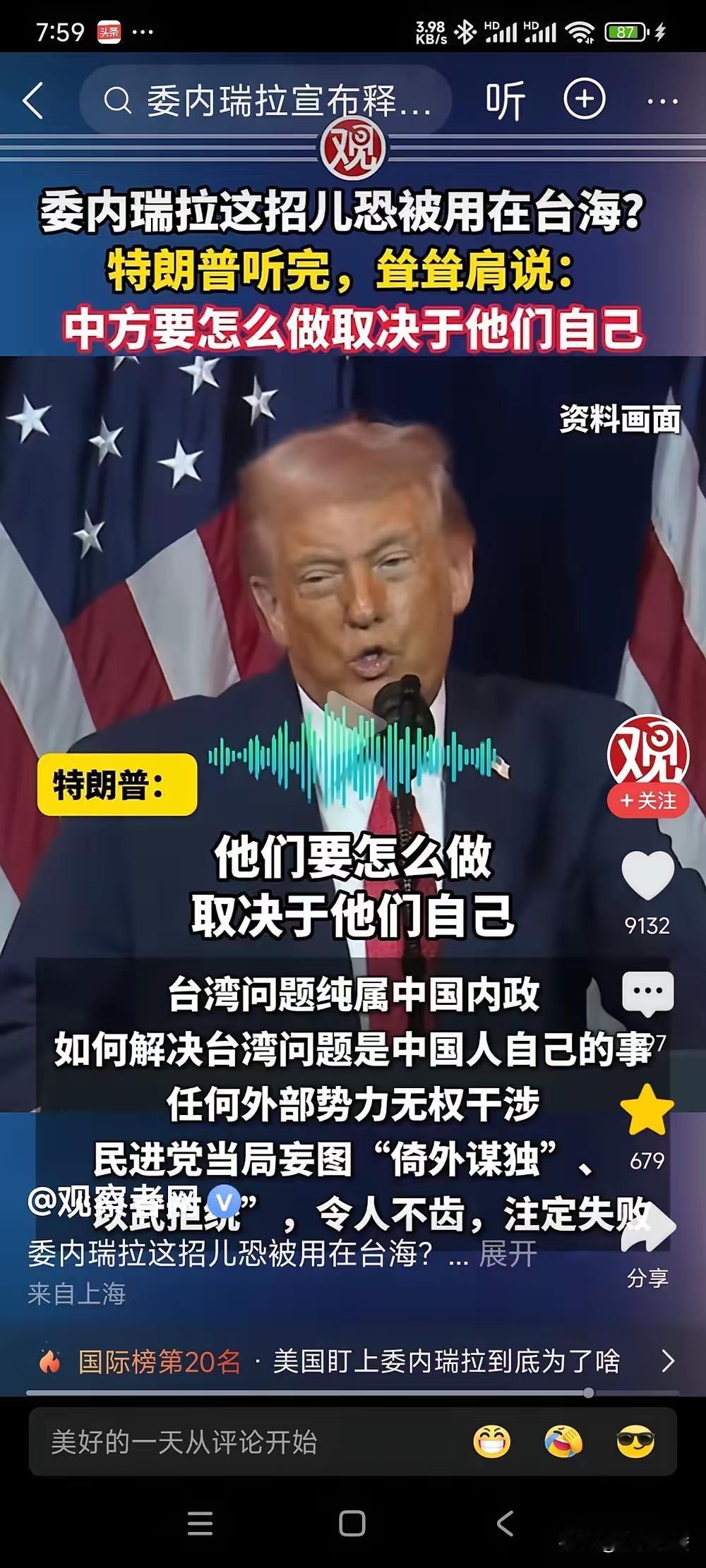 特郎普说“中俄惧怕美国”,不知道他是在给自己壮胆呢还是故意装嘴硬。