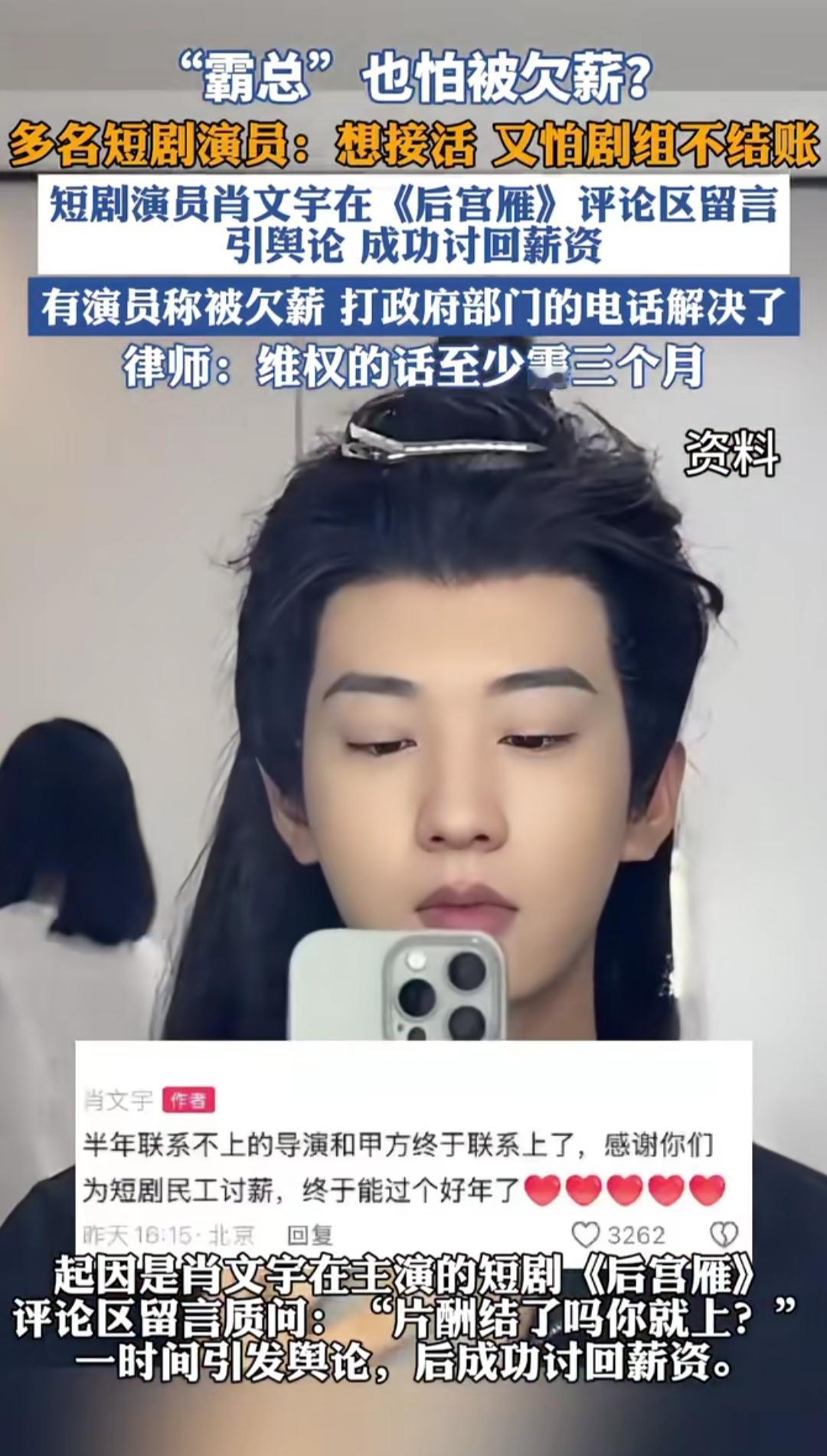 谁能想到,屏幕上挥金如土的短剧霸总,现实里最愁的是能不能拿到工资?现在不少短剧演员接活,先不问剧本和片酬,反倒先打听剧组结钱快不快。 短剧拍摄周期短、剧组流动性大,有些小剧组拍完就解散,演员片酬拖几个月都是常事。有演员吐槽,演着亿万总裁,却要为几千块片酬追着剧组要,连买道具的钱都得自己先垫,最后可能竹篮打水。 有人说演员该签正规合同维权,也有人觉得短剧行业门槛低,乱象难免。一边是想赚钱的演员,一边是不靠谱的剧组,你觉得该怎么解决这种两难?评论区聊聊~