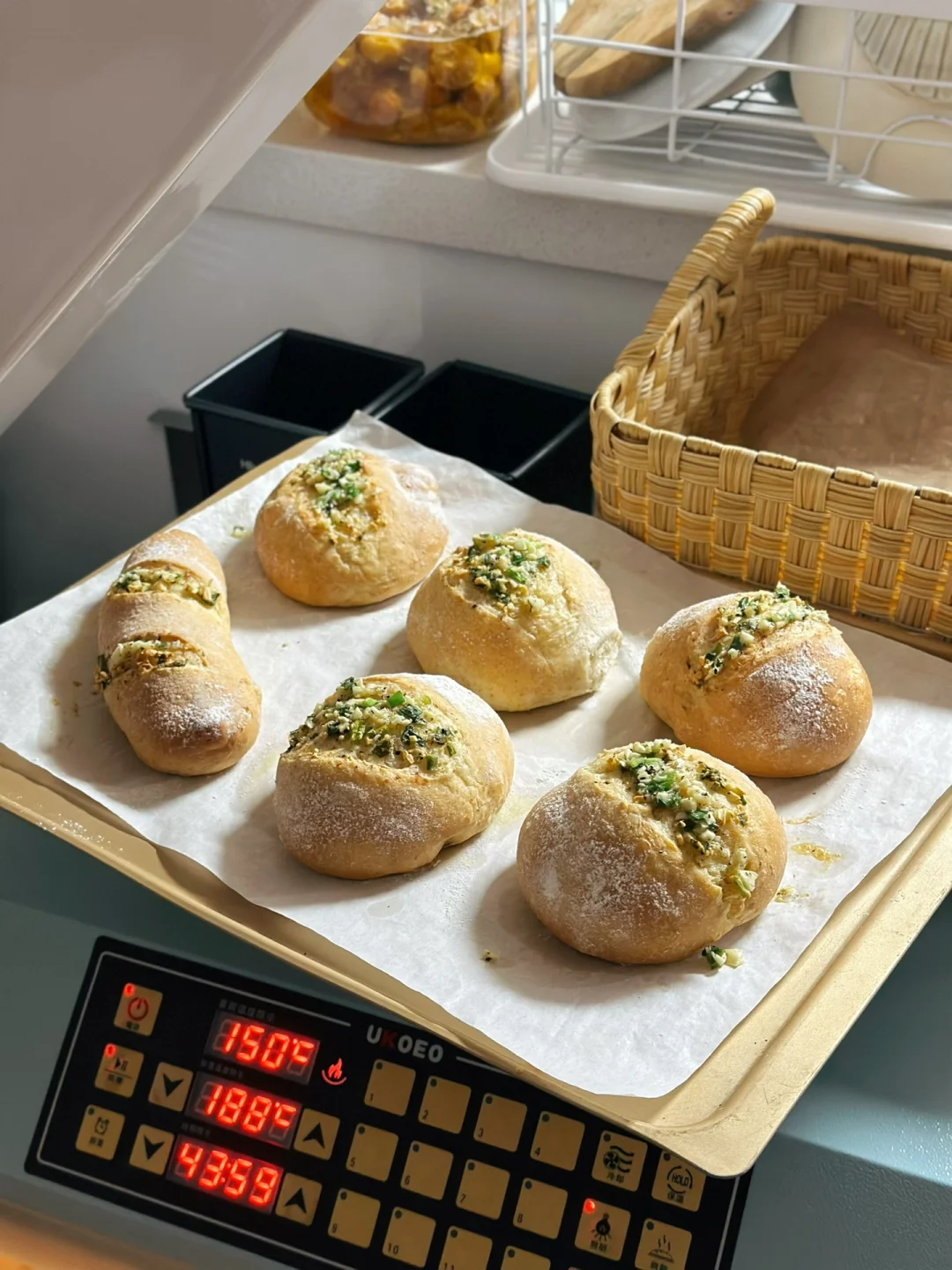 4.然后开始二次发酵温度35度75%的湿度发酵,发至八分满烤箱开始预热