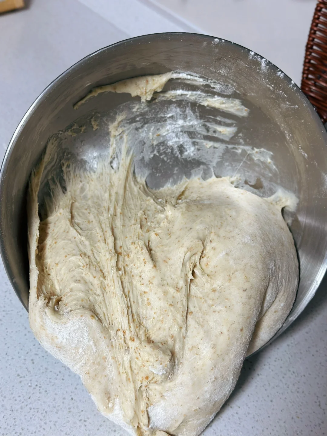 【每种面粉的吸水量不一样,所以打面团的时候水要分少量多次的加入噢】