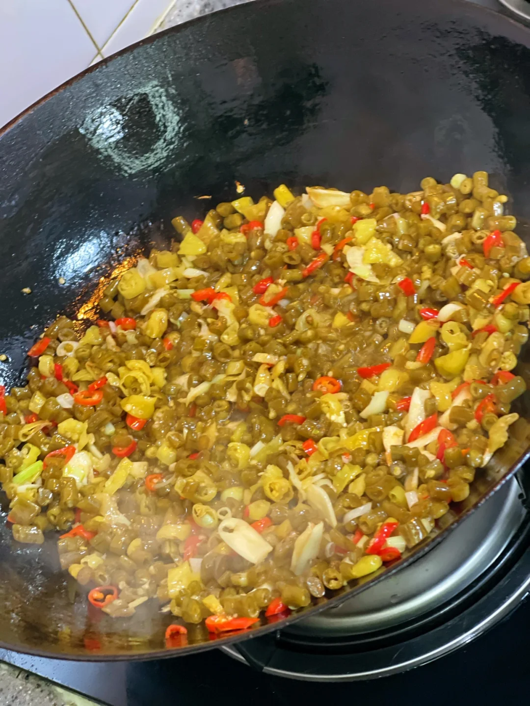 5.酸豆角丢进去炒一会儿