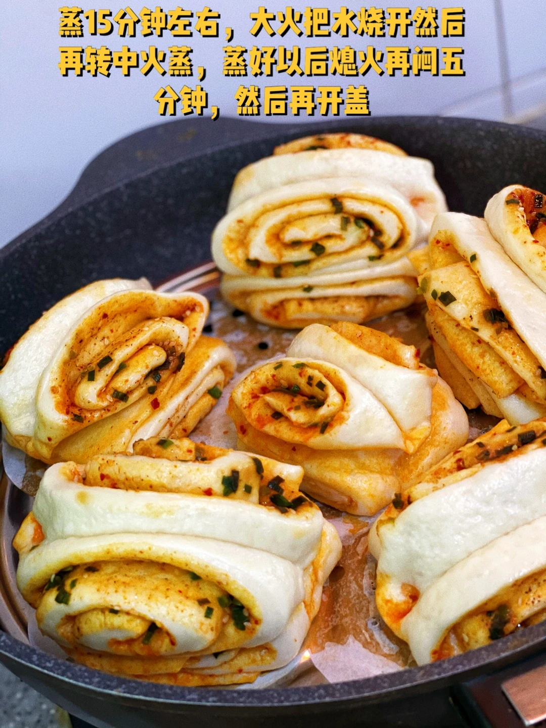 16. 蒸15分钟左右,大火把水烧开然后再转中火蒸,蒸好以后熄火再闷五分钟,然后再开盖
