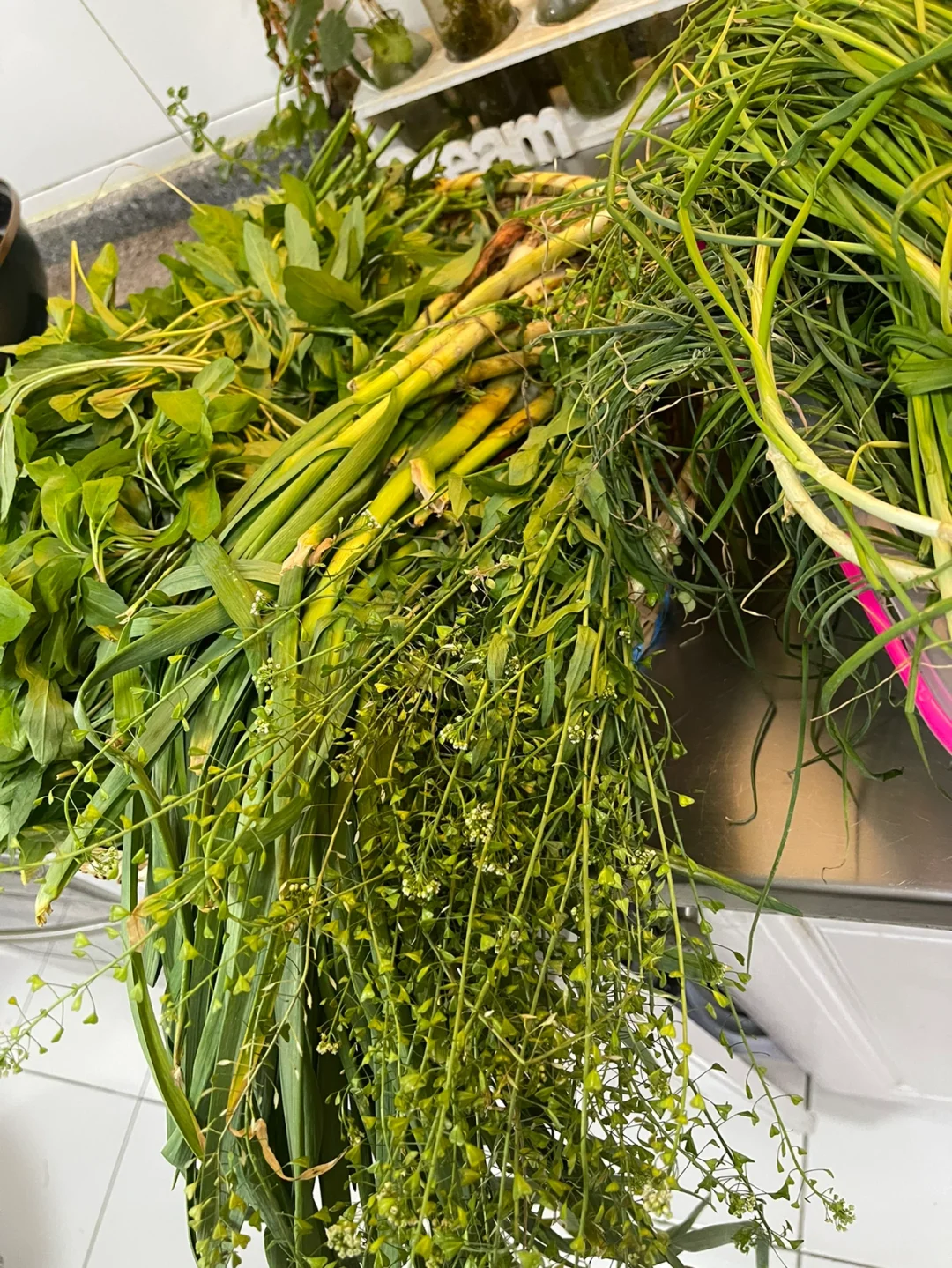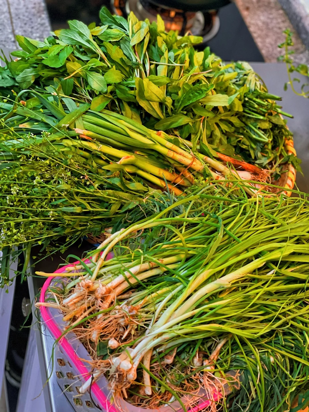 接下来的清洗也是一个大工程,因为挖的马兰头比较多,所以明天准备包一部分馄饨和包子在做焖饭,那野葱的话还是腌起来吧,平时拿来炒饭也挺好吃的