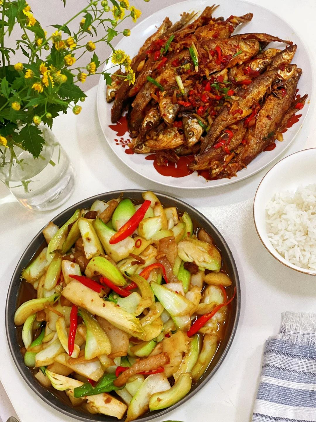 2. 叶子可以拿来炒年糕炒粉或者烫起来吃,我们今天只用梗的部分很脆