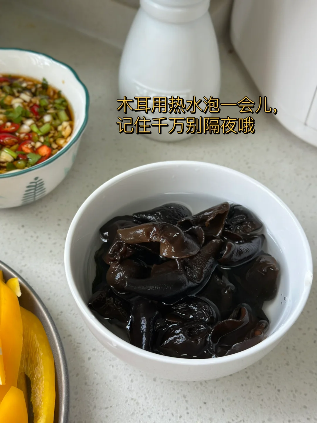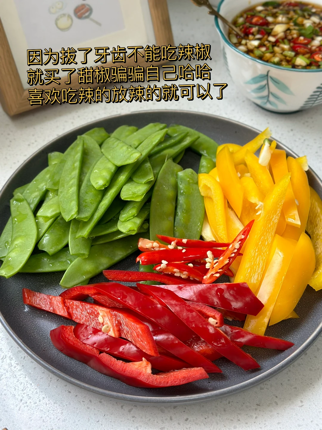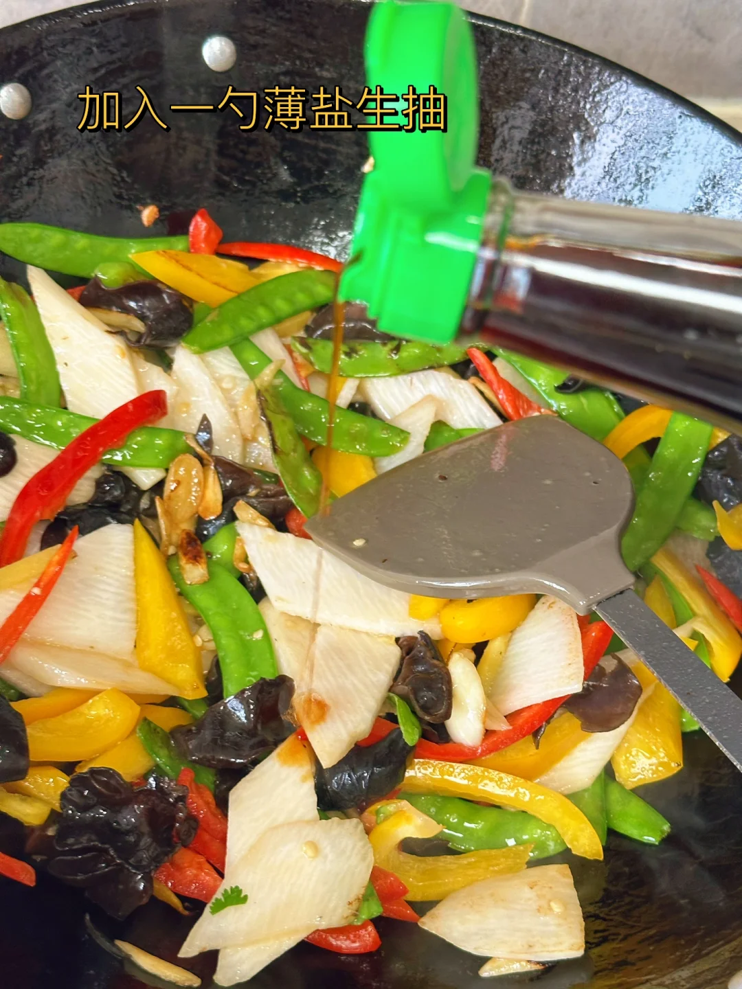 最近特别爱吃炒脆脆的山药,刚好家里刚买了很多配菜放在一起来了一个大杂烩,好吃营养减肥 1. 木耳用热水泡一会儿,记住千万别隔夜哦 2. 因为拔了牙齿不能吃辣椒就买了甜椒骗骗自己哈哈喜欢吃辣的放辣的就可以了 3. 我喜欢脆脆的山药,洗干净戴手套削皮切成薄薄的片儿水里泡一下 4. 小火爆香大蒜生姜,荷兰豆放进去先炒两三分钟 5. 然后把剩余的材料放进去转大火快速翻炒三四分钟 6. 加入一勺薄盐生抽 7. 出锅前加入适量盐鸡粉糖调味