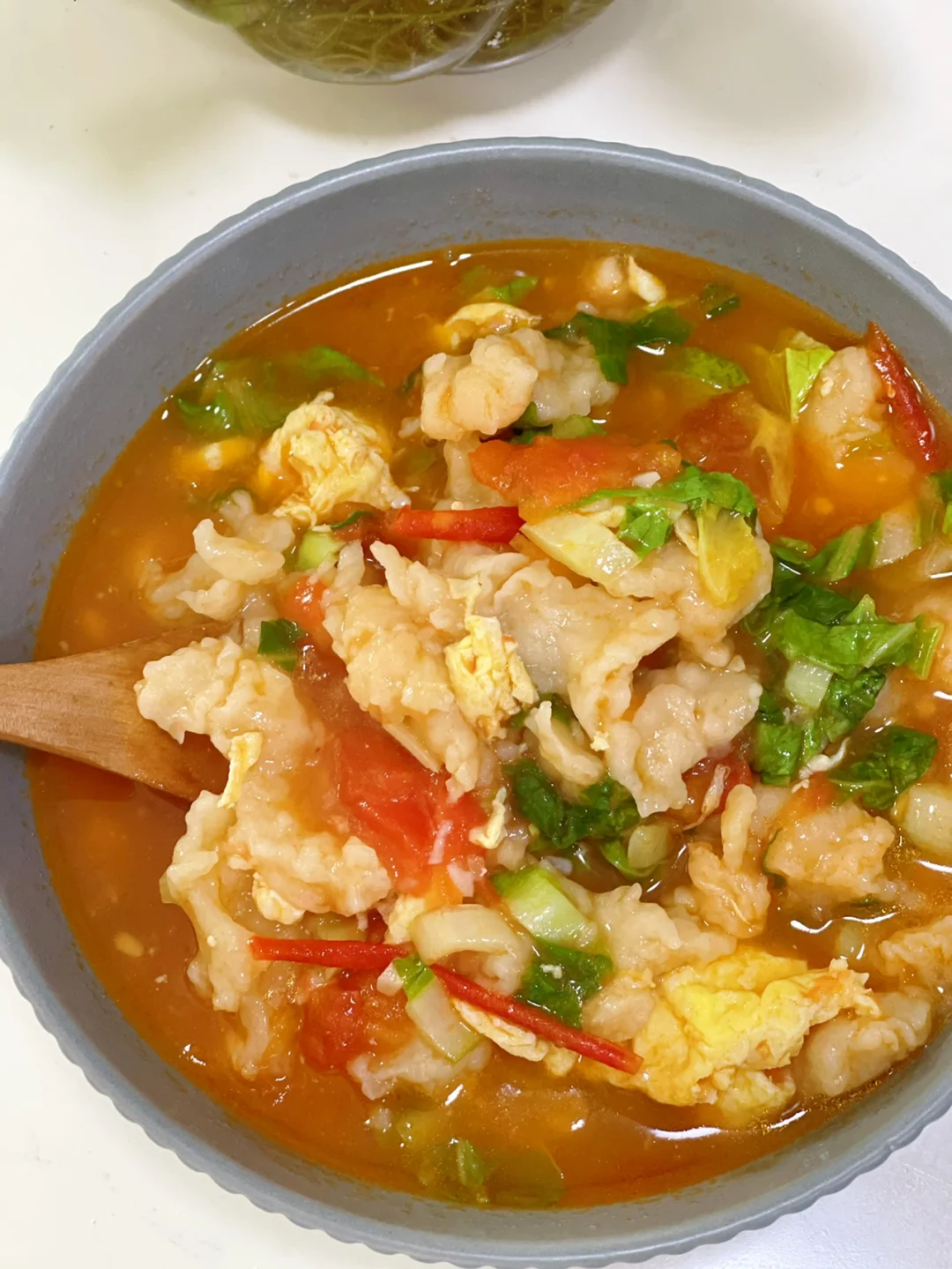 爸妈喜欢吃番茄面疙瘩汤,今天分享做法给你们:他们来的那一天买菜顺带买了几个番茄🍅放了好久了一直来不及吃,想着哪天早上做了当早餐吃,嗯哼今儿个总算给整上了: