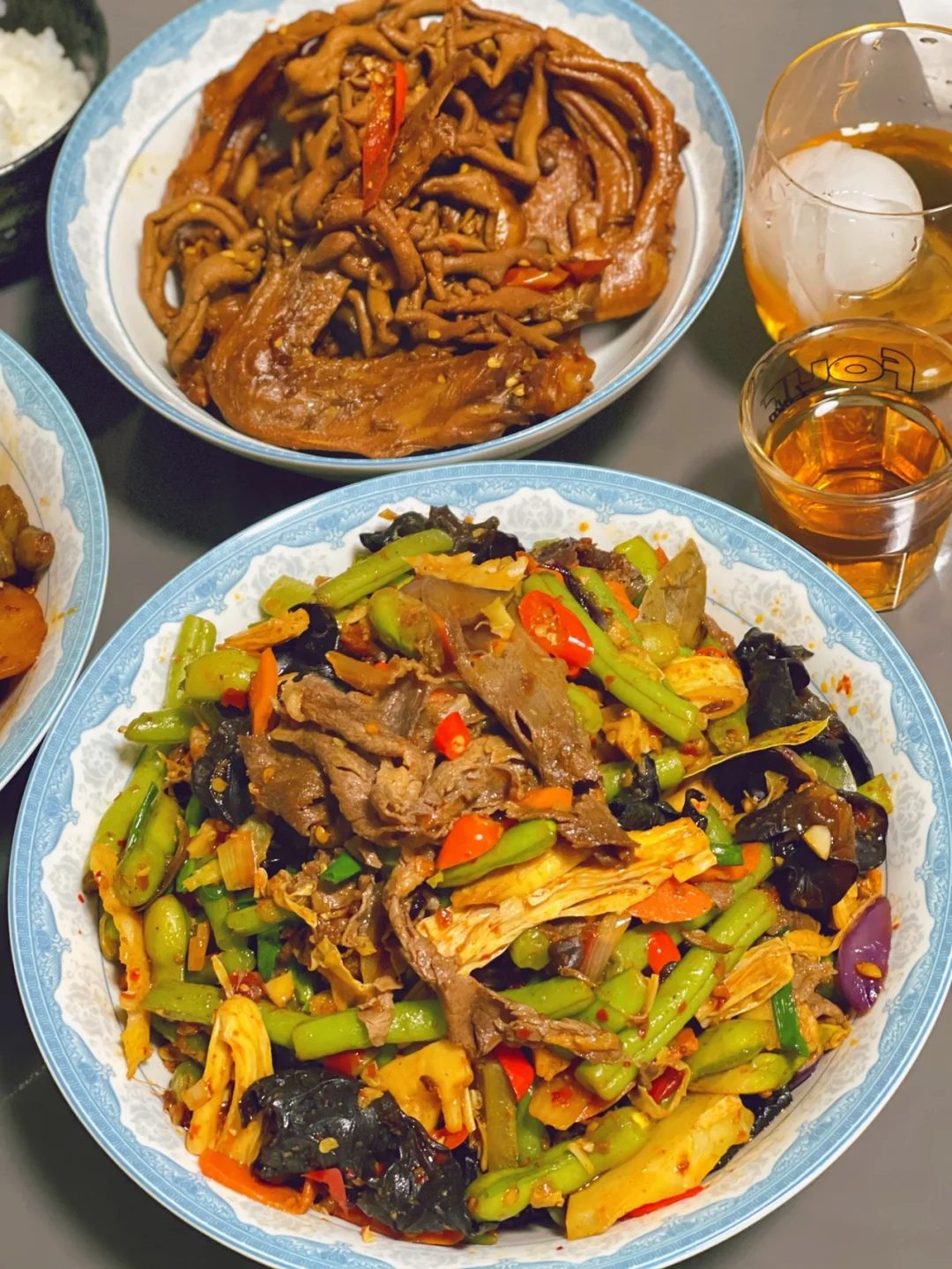 以前每次吃麻辣香锅的时候,一定会有基围虾的,那天去的时候太晚了没有了,家里冰箱正好有一盒肥牛卷就放进去了,没有想到居然很好吃,这次还特别放了腐竹是我没有想到的特别入味