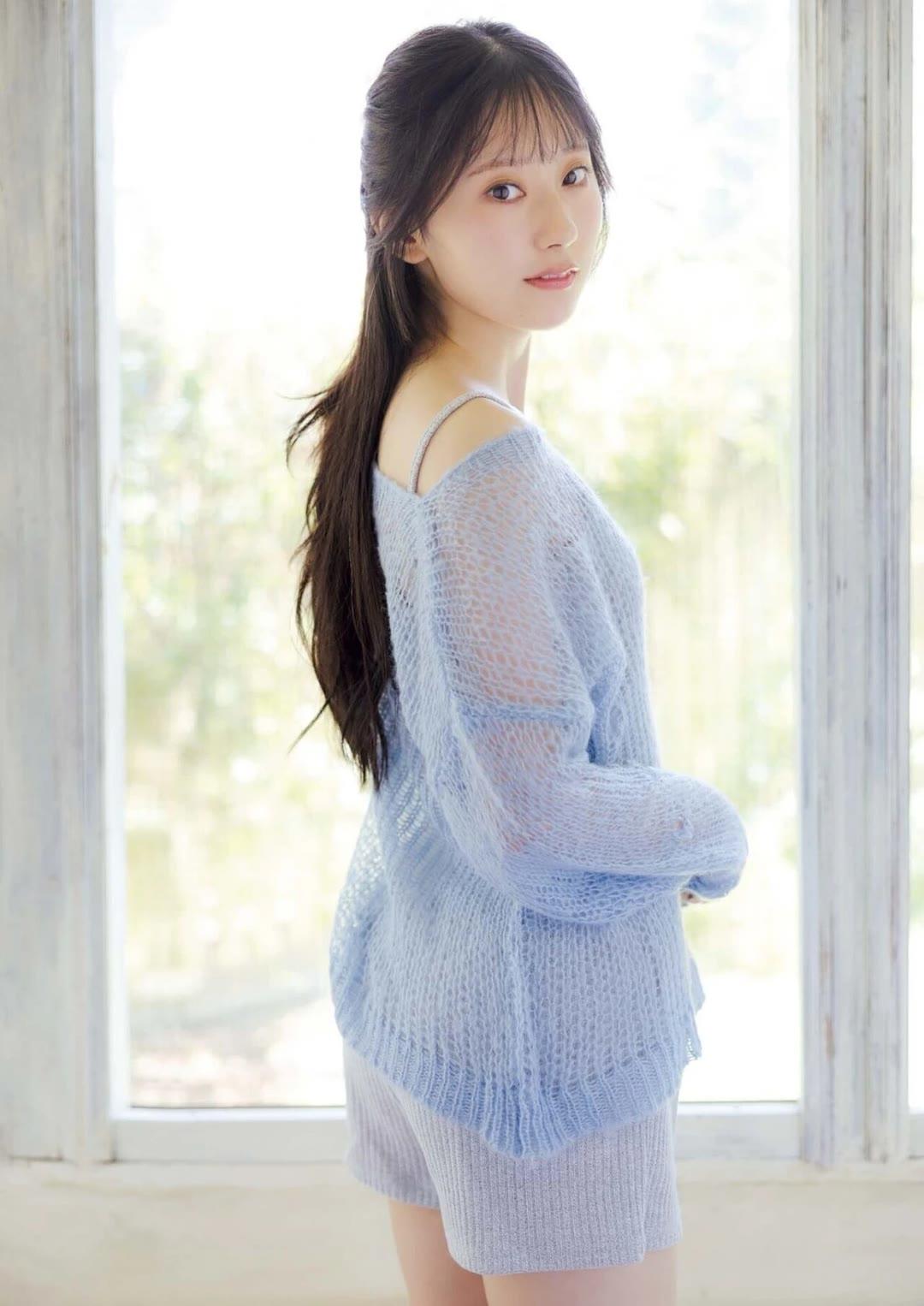 日系清新写真‖浅蓝镂空针织衫+同色短裤,阳光透过窗户洒在身上,手里拿个小饼干,氛围感直接拉满!夏的小清新穿搭 小清新穿搭写真