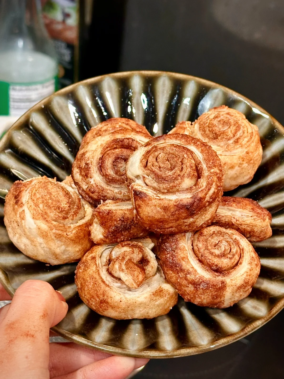 不喜欢肉桂味道太强势,或者想口感更丰富,可以在酥皮里面刷花生酱或巧克力酱!