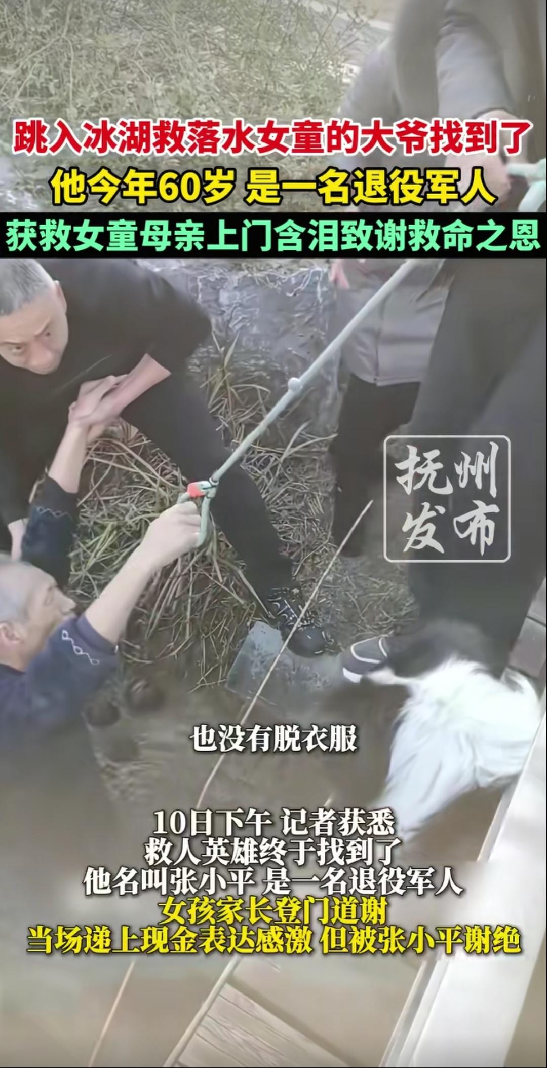 这就是军人本色吗?河南南阳,一名9岁女童独自在泮池公园玩耍时,不小心跌落冰湖中,落水女童拼命挣扎,路过的60岁老人见状,毫不犹豫跳入冰湖,周围的群众看到老人跳入湖中,也纷纷赶来,协助老人将女童救上岸。 在互联网的背景下,老人“讹人”、老人“抢座”等负面新闻层出不穷,导致老人这个群体被污名化,甚至严重到一看到老人都会选择躲着点,生怕自己不小心碰着然后给自己带来麻烦,但这位老人的举动却形成了巨大反差,也为老人群体正名,不是所有的老人都那么坏。 据1月11日的新闻报道,这事件是发生在9日下午,老人正在公园游玩时,看到湖面中扑腾的双手,当即就跑了过去,直接跳入冰湖中,将落水女童救起。据悉,当时的气温较低,被众人拉上岸后,老人全身湿透被冻得直哆嗦,没有过多停留,老人默默离开事发地。 这名老人原来是一名退役军人,本名叫张小平,当获救女童家长带着礼物及酬金上门表示感谢,老人果断拒绝,坚守着自己爱人民、护人民、为人民的军人本色。 网友看后表示,这样的老人才是值得我们尊敬的老人,如果在公交上遇到,别说让我让座了,就算坐我身上都行,心甘情愿! 信息来源:《跳入冰湖救落水女童的大爷找到了,他今年60岁,是一名退役军人,获救女童母亲上门含泪致谢救命之恩》抚州发布