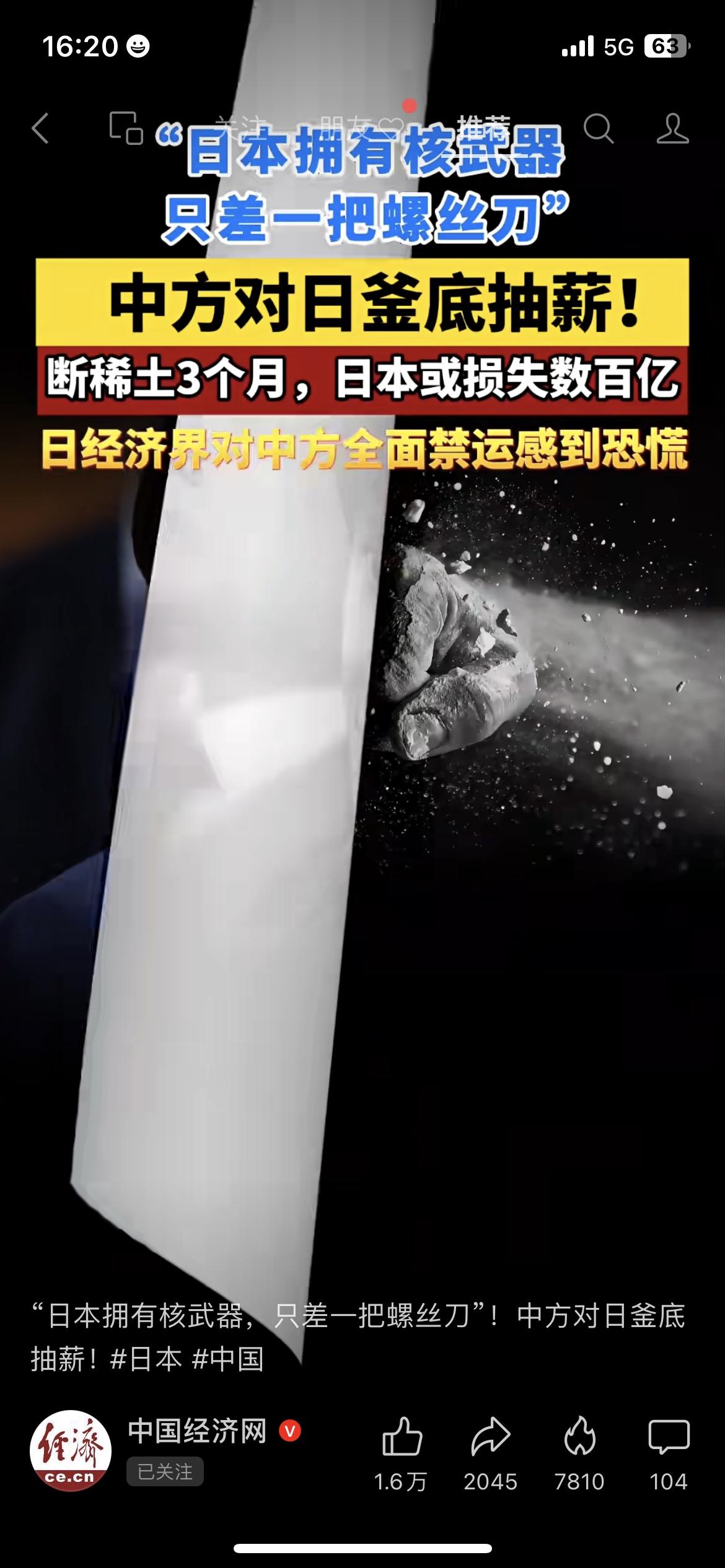 中方断稀土供应,日本或损失数百亿!这步棋太关键了 美国专家说日本造核弹“只差一把螺丝刀”,中方直接断稀土供应3个月,日本经济界慌了神。稀土是高科技和军工的命脉,咱们掌握主动权,就是最好的底气! 你觉得稀土牌对遏制日本核野心想起到多大作用?稀土禁运