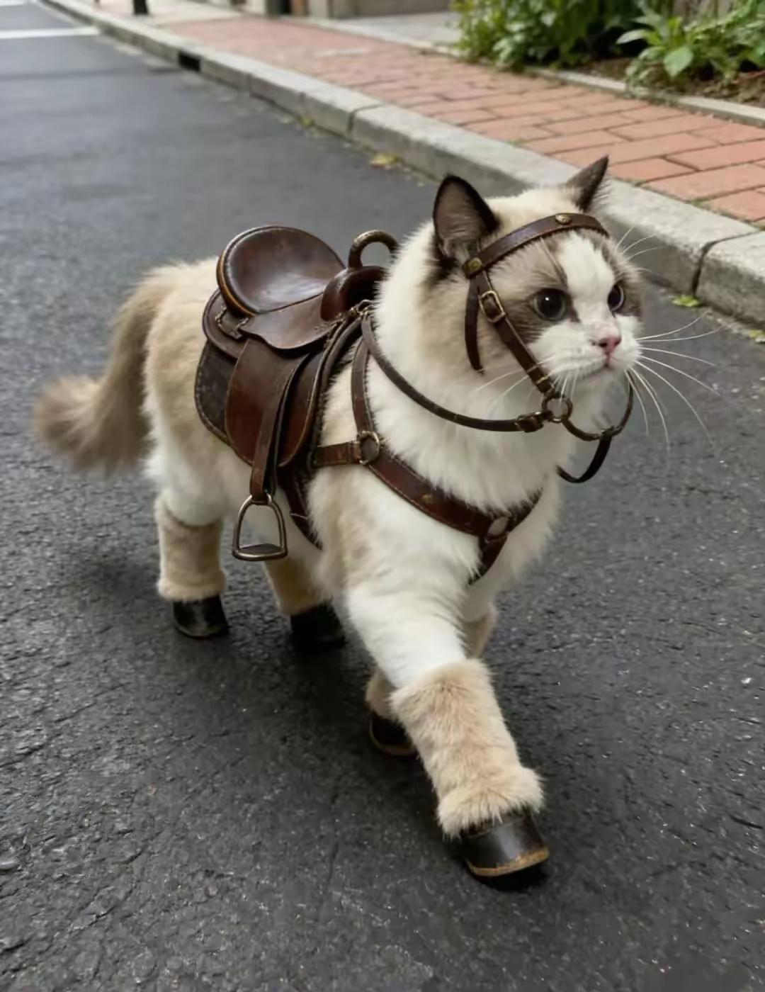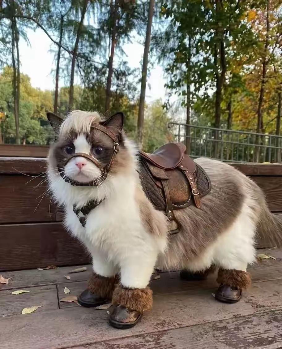 今天是真看见穿靴子的猫了。 看着这马装倒是挺好看的, 猫猫不反感就好。 每个猫猫成长过程不一样, 从小就被打扮的猫猫,特别喜欢打扮。也喜欢上街上玩。 但切勿模仿,大多数自由成长的,这样就成伤害了。