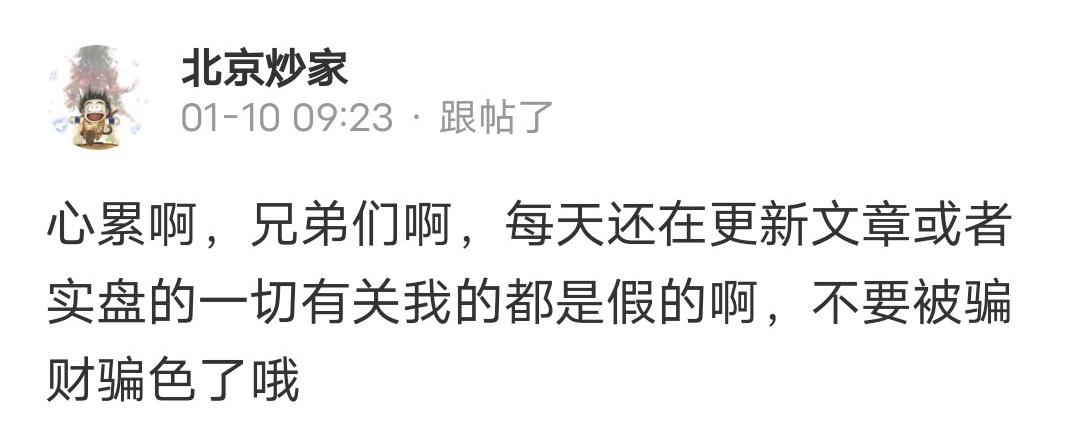 北京炒家发文:每天还在更新文章或者实盘的一切有关我的都是假的啊,不要被骗了