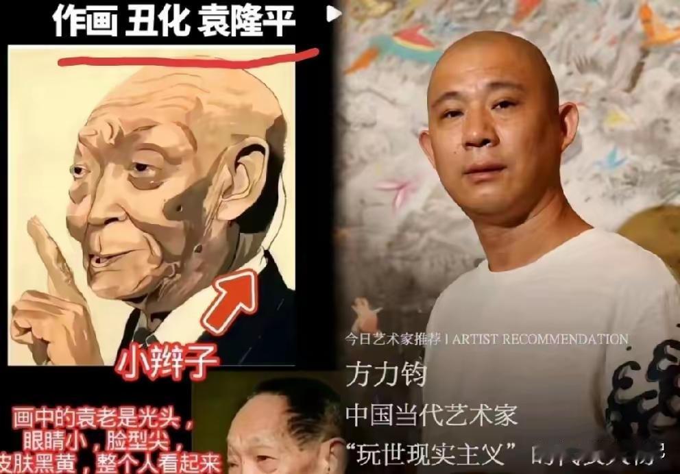 刚才刷到方力钧画的袁老,我不懂画,但我大受震撼。 堂堂美院的大才子,笔下的袁老竟然是光头、塌鼻梁,脑后还拖着根细细的“鼠尾辫”。 第一次看到这幅画的时候,给人的第一印象就是怎么这么丑,这么怪,一直没明白这叫什么艺术? 看到这个画像,心里的感觉是疼是痛!袁老是共和国勋章的获得者,这就是故意丑化呀! 朱元璋也是这样被丑化的吧,一代一代丑化,然后我们看到的就是丑化后的朱元璋! 大家怎么看他的画画水平? 方力钧