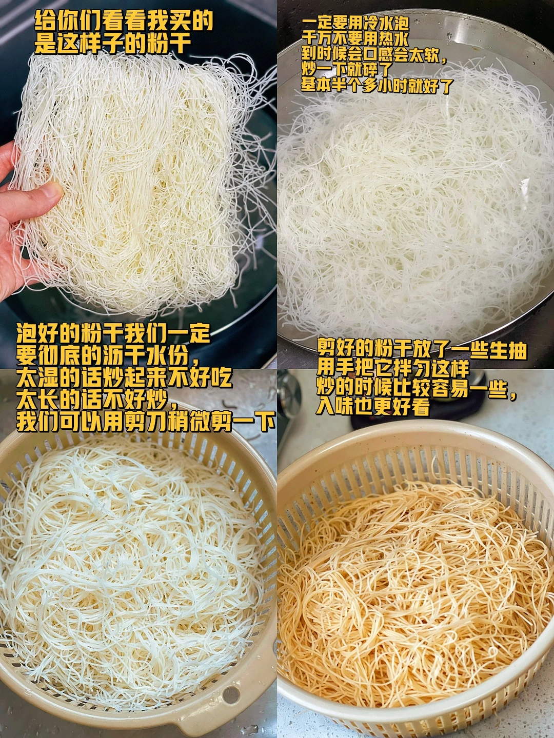 4. 泡好的粉干我们一定要彻底的沥干水份,