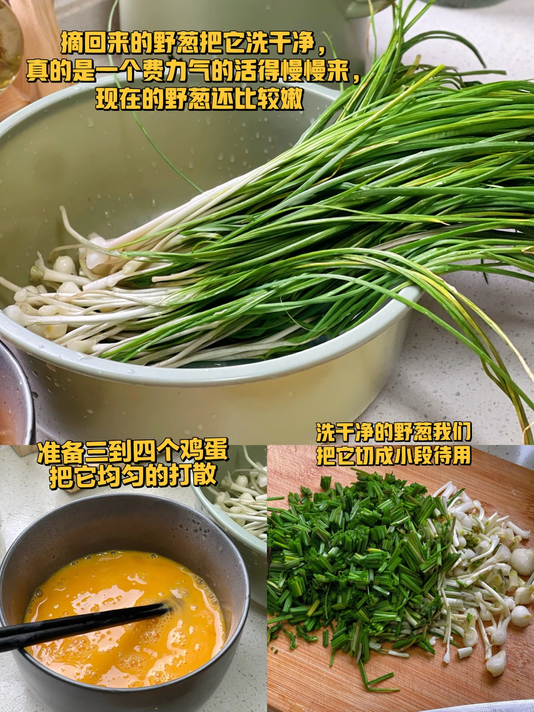 1. 摘回来的野葱把它洗干净,真的是一个费力气的活得慢慢来,现在的野葱还比较嫩