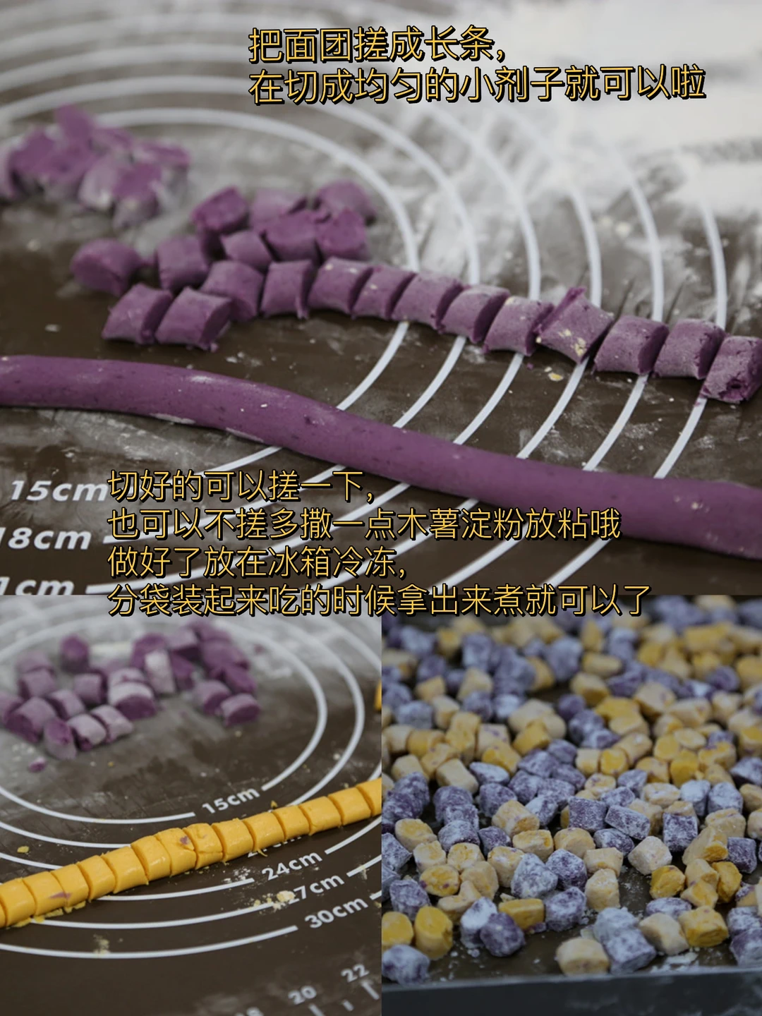12. 切好的可以搓一下,也可以不搓多撒一点木薯淀粉放粘哦做好了放在冰箱冷冻,分袋装起来吃的时候拿出来煮就可以了