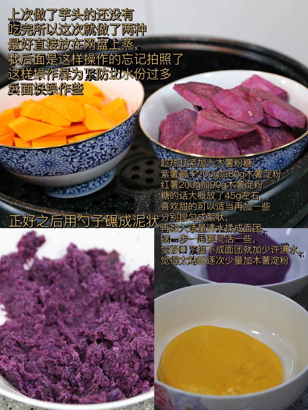 8. 上次做了芋头的还没有吃完所以这次就做了两种最好直接放在网盘上蒸,我后面是这样操作的忘记拍照了这样操作是为了防止水份过多