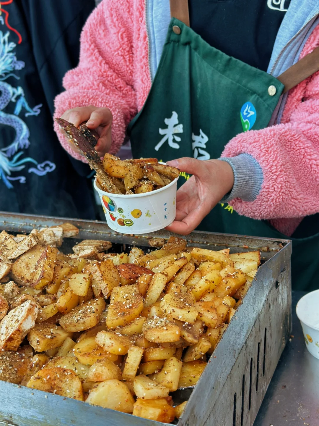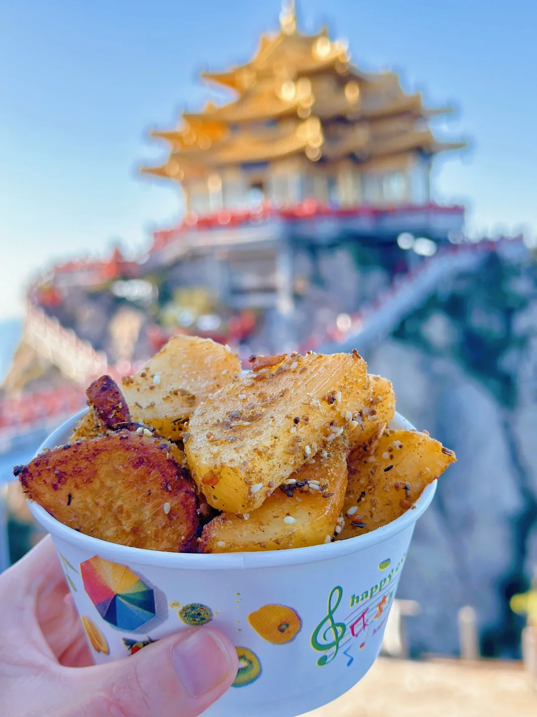上面买了煎土豆,还有煎豆腐可以双拼,12大洋一份也不少,泡面也有的!体力不够的带一些水路途中喝小零食不重的备一点就可以啦