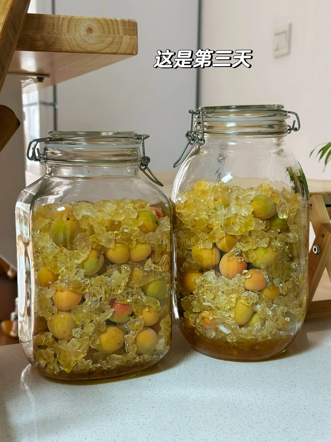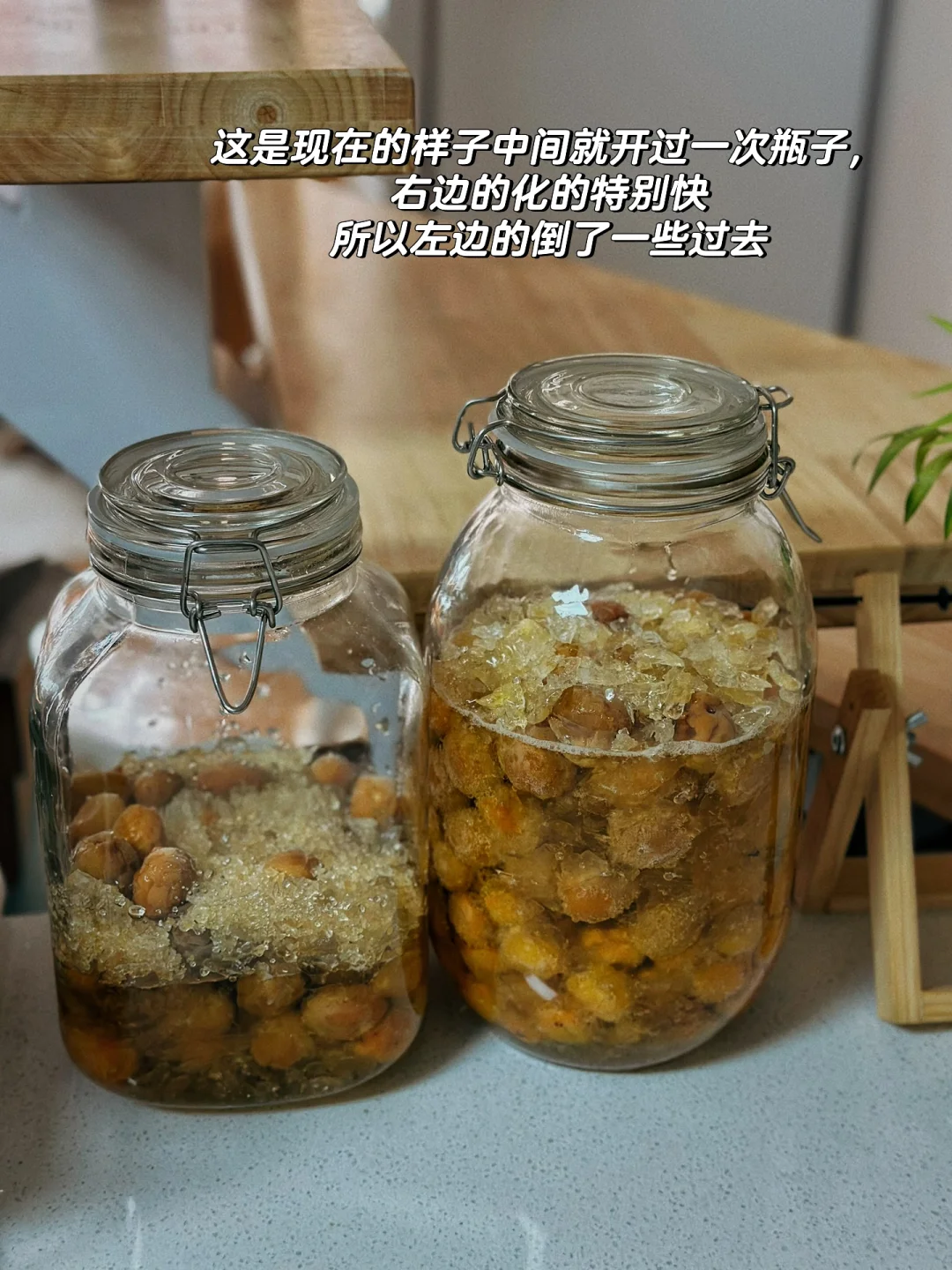 青梅路十几天了,中间很少打开放气就打开过一次,同时做的两瓶感觉右边的融化的更快,左边的融化的特别慢后来就把左边的到了一部分在右边的瓶子!小瓶子的是冷冻过后做的,感觉冰糖化的很快颜色也很清亮,但是我感觉我的好像都没有发酵!第一次做没有经验有人解答一下吗