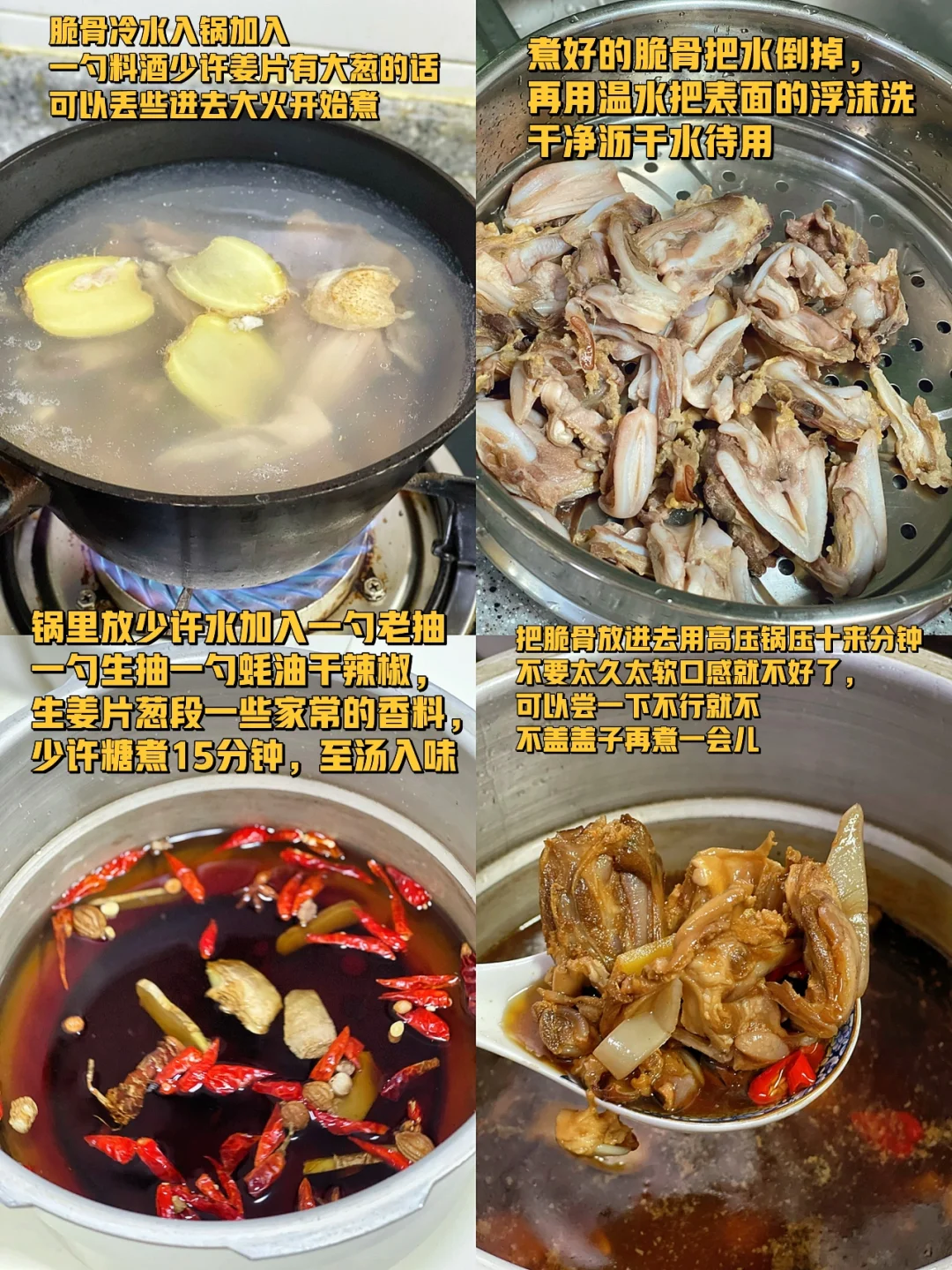 4. 把脆骨放进去用高压锅压十来分钟不要太久太软口感就不好了,可以尝一下不行就不不盖盖子再煮一会儿