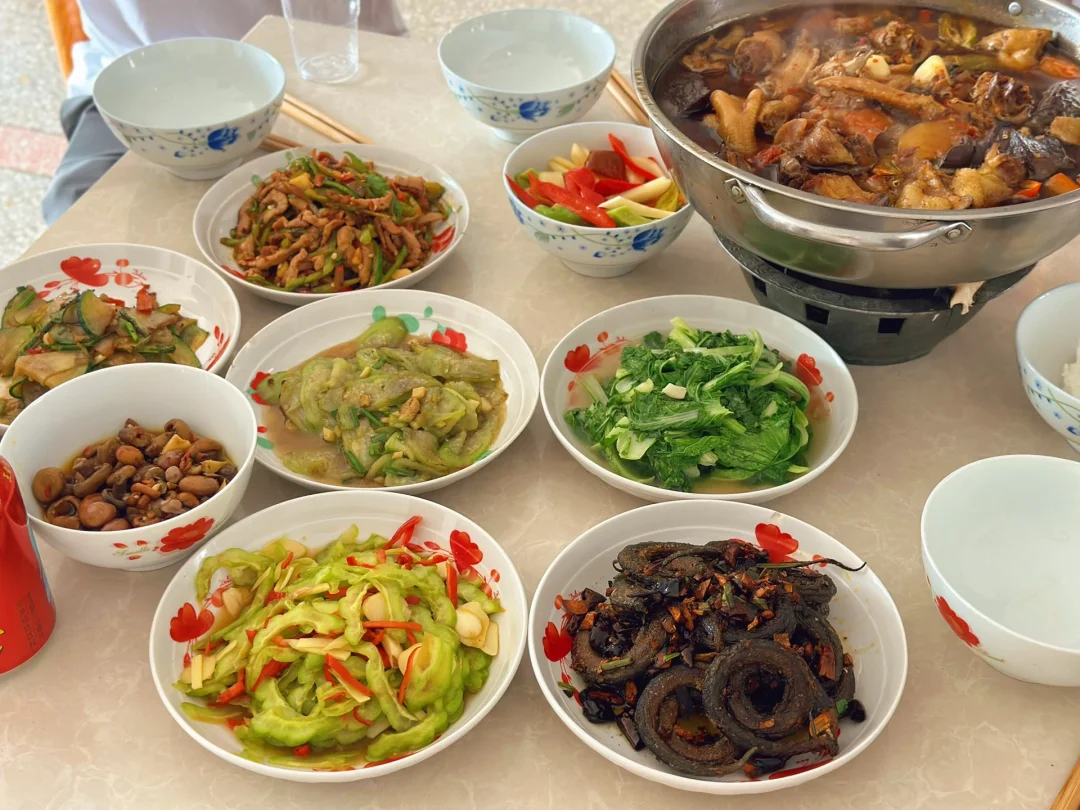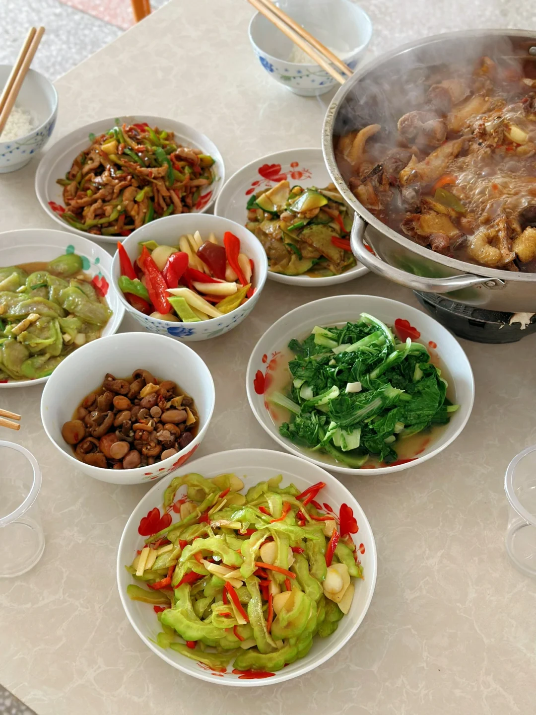在老家最幸福的事情就是可以吃到真正的土鸡 猪肉不太喜欢,其次就是鱼虾蟹了,感谢我妈妈到处说我喜欢吃土鸡[笑哭R][笑哭R] 每次回老家去亲戚家都会送土鸡给我,自家养的也有 幸福感满满 今天去叔叔家吃饭也是一早就杀好鸡等着我们到了让我妈妈炒说是怕他做的不和我口味 蔬菜摘下来还有虫眼完全没有打农药啊,虽然都是家常菜但是吃的很舒心呀! 就算在外面吃了再多的山珍海味还是会想念家乡菜呀有你们喜欢的吗[害羞R][害羞R]
