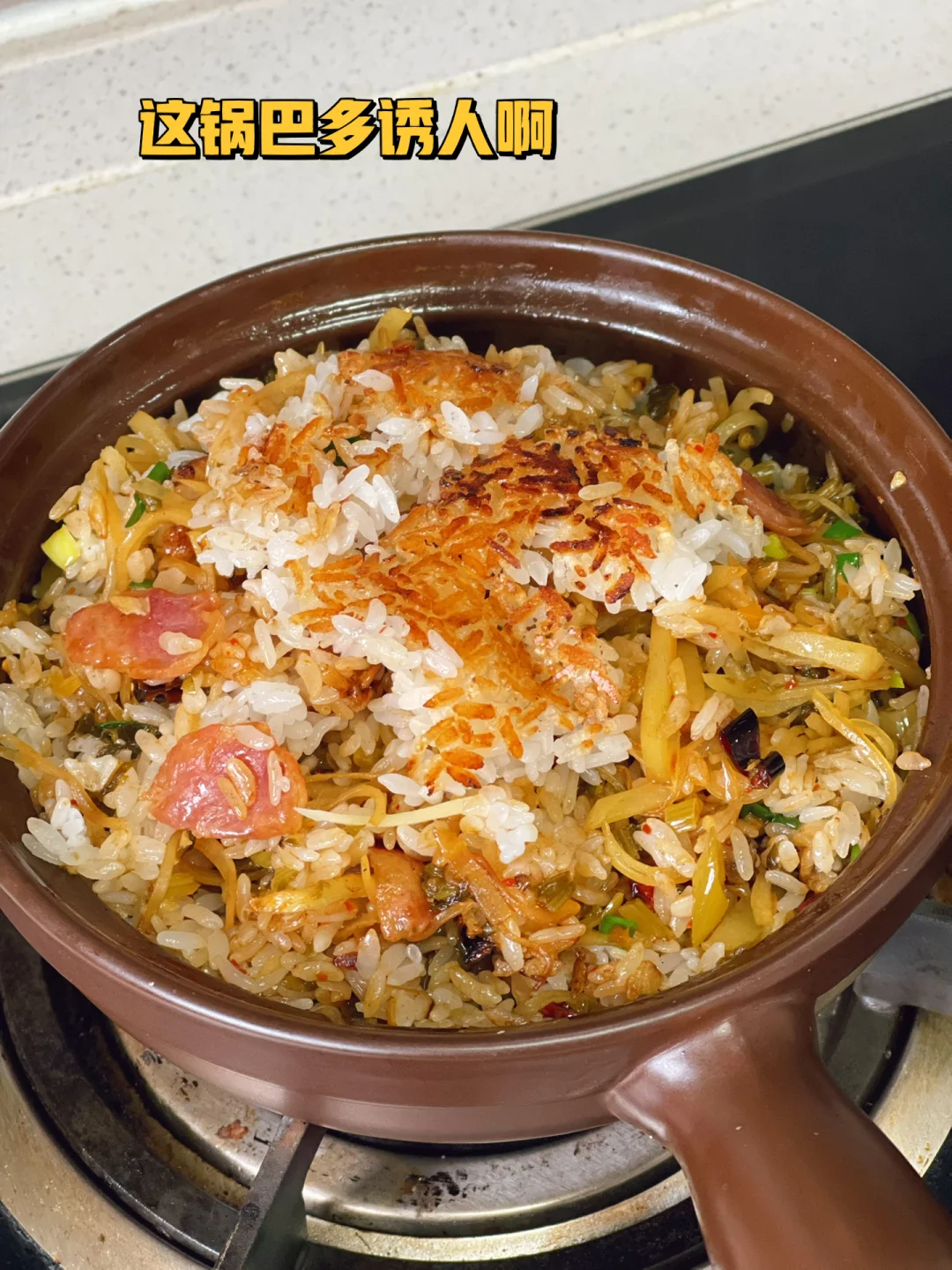现在我做煲仔饭已经是炉火纯青了,看看图三的锅巴多诱人[哈哈][哈哈][鼓掌]今天放了一点雪菜土豆丝进去太开胃了吃的我好爽好满足,这么大一锅吃的只剩一丢丢实在塞不进去了!