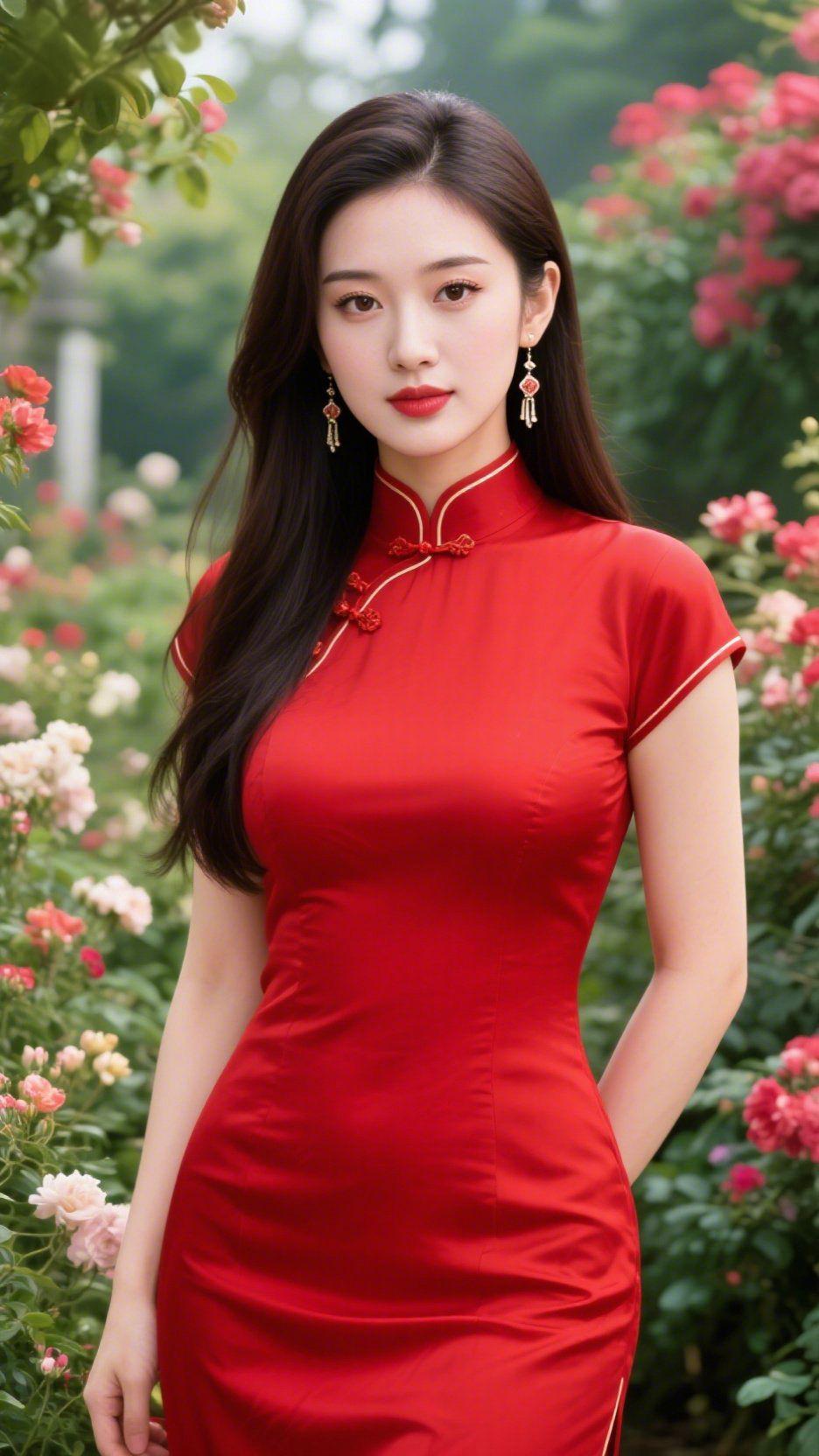 红缎旗袍的花畔雅 晴光轻覆红缎旗袍,衣色浸着春阳的暖,领边盘扣与细镶线相衬,更显明艳舒展。短袖款式轻展肩臂,无繁复装饰,热烈红调与花畔柔色相融,东方雅意便浸在了风里。 她立在花丛间,长发垂落裹着轻软花香,耳饰微光与衣身艳色相和——这一身并非惹眼的燥,更像枝间盛放的红玫,鲜活却温婉,目光轻触,便接住那份舒展的明媚。 旗袍从不是普通衣装,是把季节之美织入纹理。如同晴日花光,无需雕琢,便将东方韵致揉进这抹红缎的光影里。 红缎旗袍美学 花畔东方雅韵