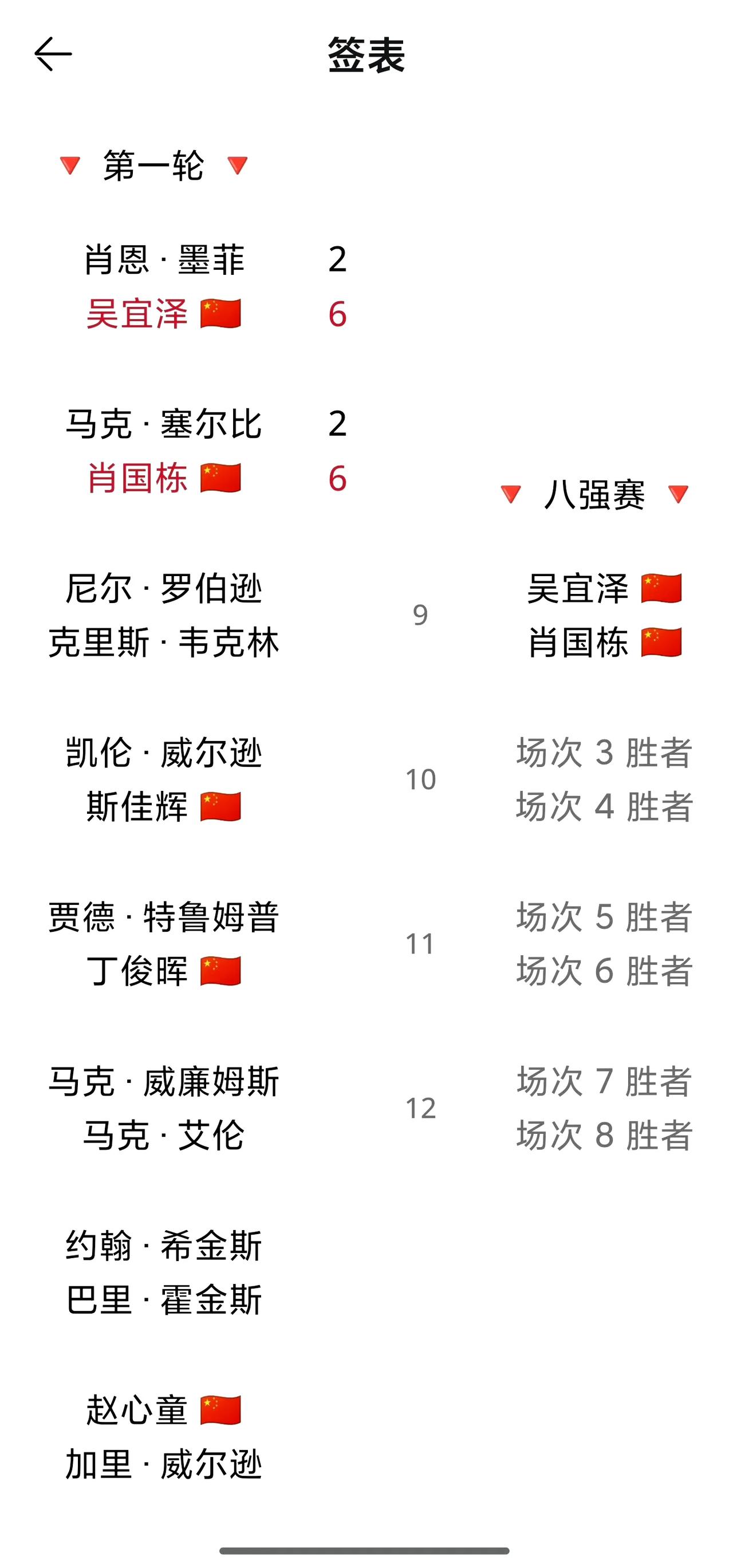 肖国栋吴宜泽会师八强!两场相同的比分各自淘汰了大满贯对手墨菲和塞尔比,谁能想到会是这种局面,新年第一项大赛给了我们这么大的惊喜,要知道,大师赛中国最多也就两位选手同时打进八强,接下来还有丁俊晖,斯佳辉,赵心童出战,打破记录这是最好的机会,谁能晋级[加油]