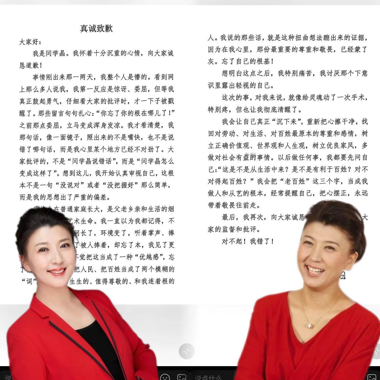 我好像突然明白 为什么闫学晶现在出来道歉了 因为她无论如何也想不到,自己代言了十几年的品牌,这两天正式发文和她切割了。 1月11日佐香园发声明终止合作,统厨也切割,产品全线停产。这俩品牌一表态,估计其他商务也受影响。 这哪是简单向大众低头,分明是向利益低头。品牌切割,意味着代言费没了,后续合作也泡汤。 她家一年得花百八十万才能正常运转,没了代言收入,这日子可咋过? 在我看来,明星代言得慎重,不能只图眼前利益。一旦品牌出问题,自己形象受损不说,经济上也得遭殃。闫学晶这事儿就给其他明星提了个醒。 大家觉得明星代言该负多大责任呢?快来评论区聊聊!