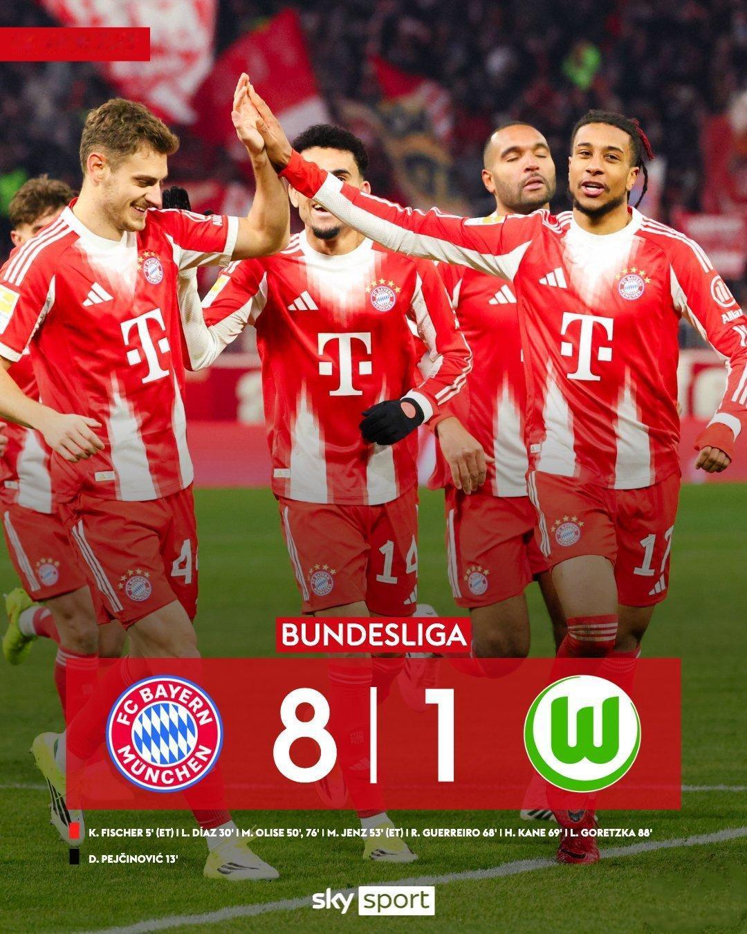 这个赛季的德甲毫无悬念可言,拜仁本轮8-1击败德甲老牌劲旅沃尔夫斯堡。16轮过后,拜仁领先第二名11分,打进了63个进球。拜仁把德甲踢成了自己的足总杯啊,毫不夸张地说,拜仁这个赛季如果没有提前5轮夺冠,都不能说合格。