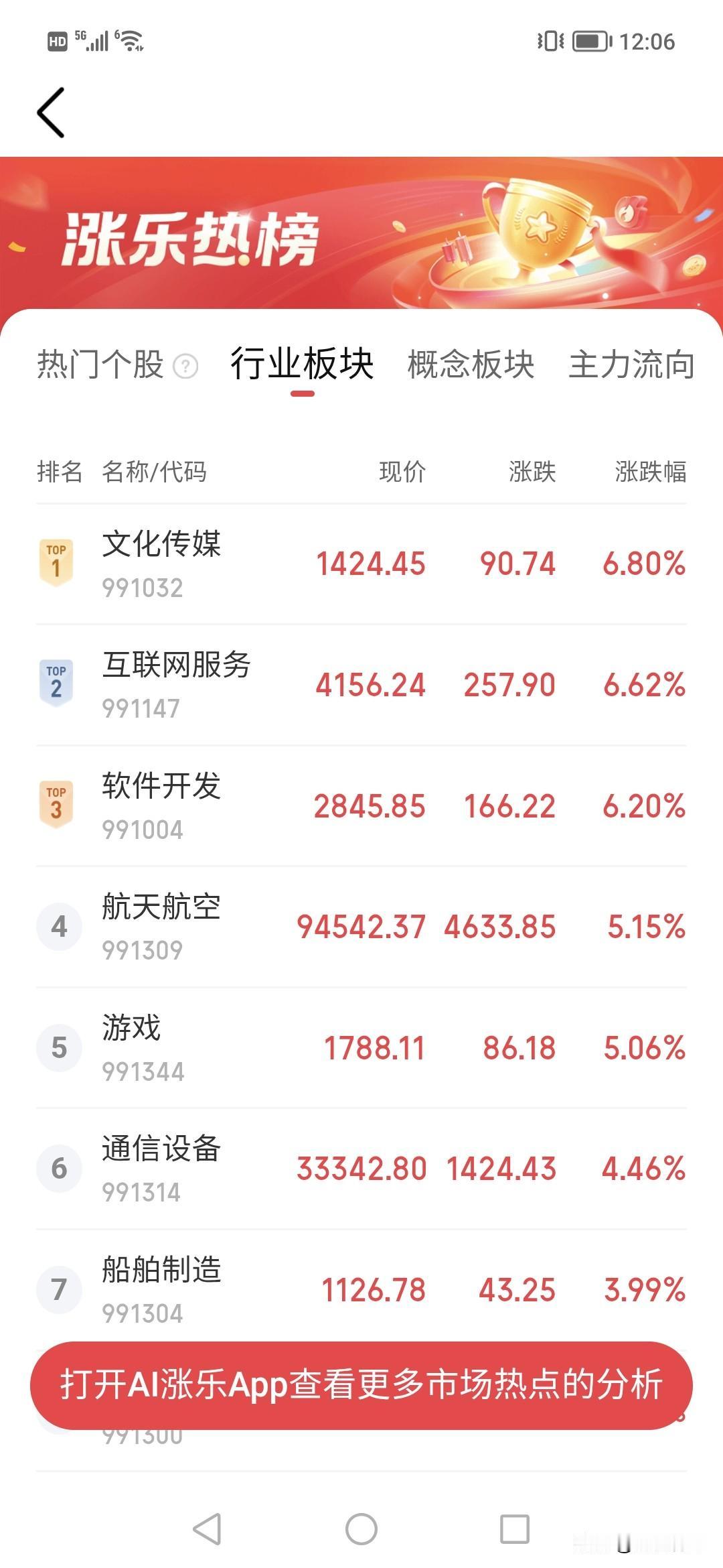 妈呀,股民太疯狂,传媒一天暴拉7%,软件,军工,半导体,游戏,通信今天全部大涨,