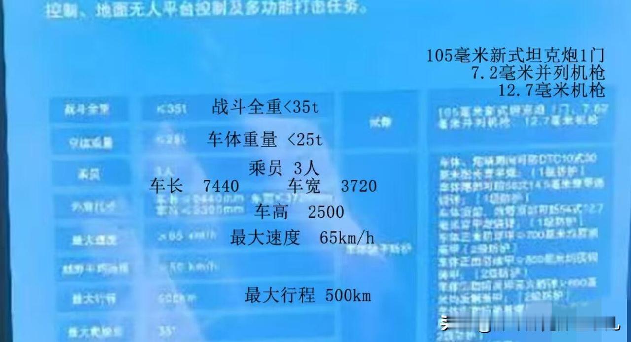 100式坦克参数展板流出,属性太颠了... 全重仅35吨,极速却能达到65km/h,机动性拉满的同时,防护能力更是颠覆认知。 车体和炮塔周向能硬抗DTC10式30毫米脱壳穿甲弹,尾部可防56式14.5毫米穿甲燃烧弹,顶部也能抵御54式12.7毫米穿甲燃烧弹,全向防护无死角。 正面防穿甲超过700毫米、防破甲超850毫米均质钢装甲,侧面能扛住反坦克火箭弹,顶部对破甲子弹防护也达100毫米,还具备8KG TNT的防地雷能力。 35吨的体量,硬是达到了99式的防护水平,这样的参数配置,让全球其他四代坦克方案都黯然失色。 “双离谱”?没错!