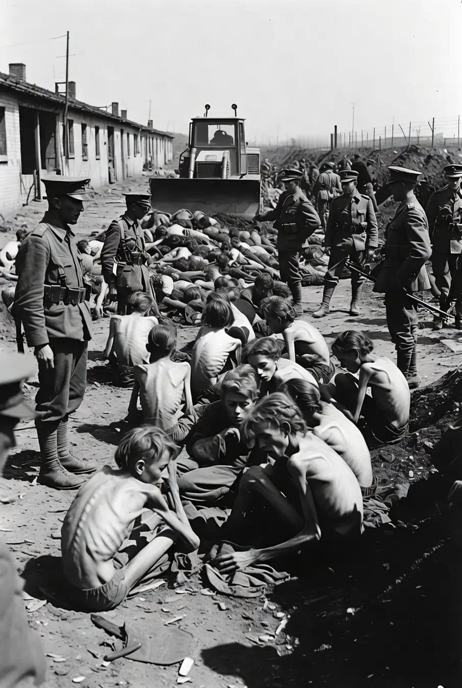 【老照片背后的故事】 当英军于1945年4月进入贝尔根-贝尔森集中营时,他们目睹了难以想象的恐怖景象。这座最初设计为战俘营的地方,在纳粹为躲避解放而将其他集中营的囚犯转移至此之后,已变成了拥挤不堪、疾病肆虐的死亡之地。英军抵达时,集中营已处于最终崩溃阶段。成千上万的囚犯因营养不良、疾病和极度虚弱被遗弃等死。尸体随处可见,幸存者则虚弱到无法埋葬逝者。 英军立即搭建了紧急医疗站,但疫病猖獗,许多囚犯在解放后数周内相继离世,其中就包括安妮·弗兰克和她的姐姐玛戈。虽然用推土机将尸体推入集体墓穴的景象令人不安,但这是为防止斑疹伤寒等已夺走无数生命的疾病进一步传播而采取的必要措施。这些暴行后来通过照片和影像被记录下来,其中部分资料既被用于战争罪审判,也被用于回击那些否认大屠杀的历史修正主义。