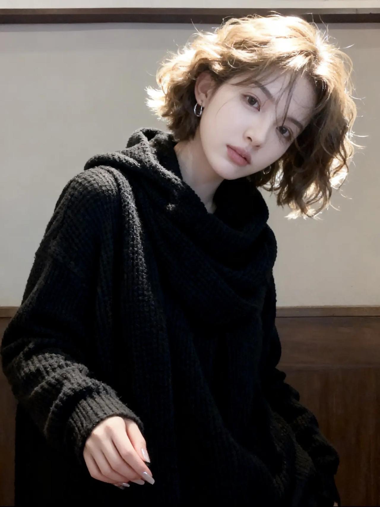 夜晚短发写真照片