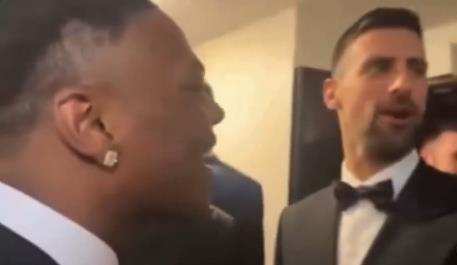 德约科维奇和甲亢哥的互动太搞笑了。😭😂 甲亢哥:“嘿,兄弟,你叫什么名字?你看起来很眼熟。” 德约科维奇:“我是AC米兰的新星。我还没有参加比赛, 但下一场比赛我要上演帽子戏法。” 甲亢哥:“是的,先生!”